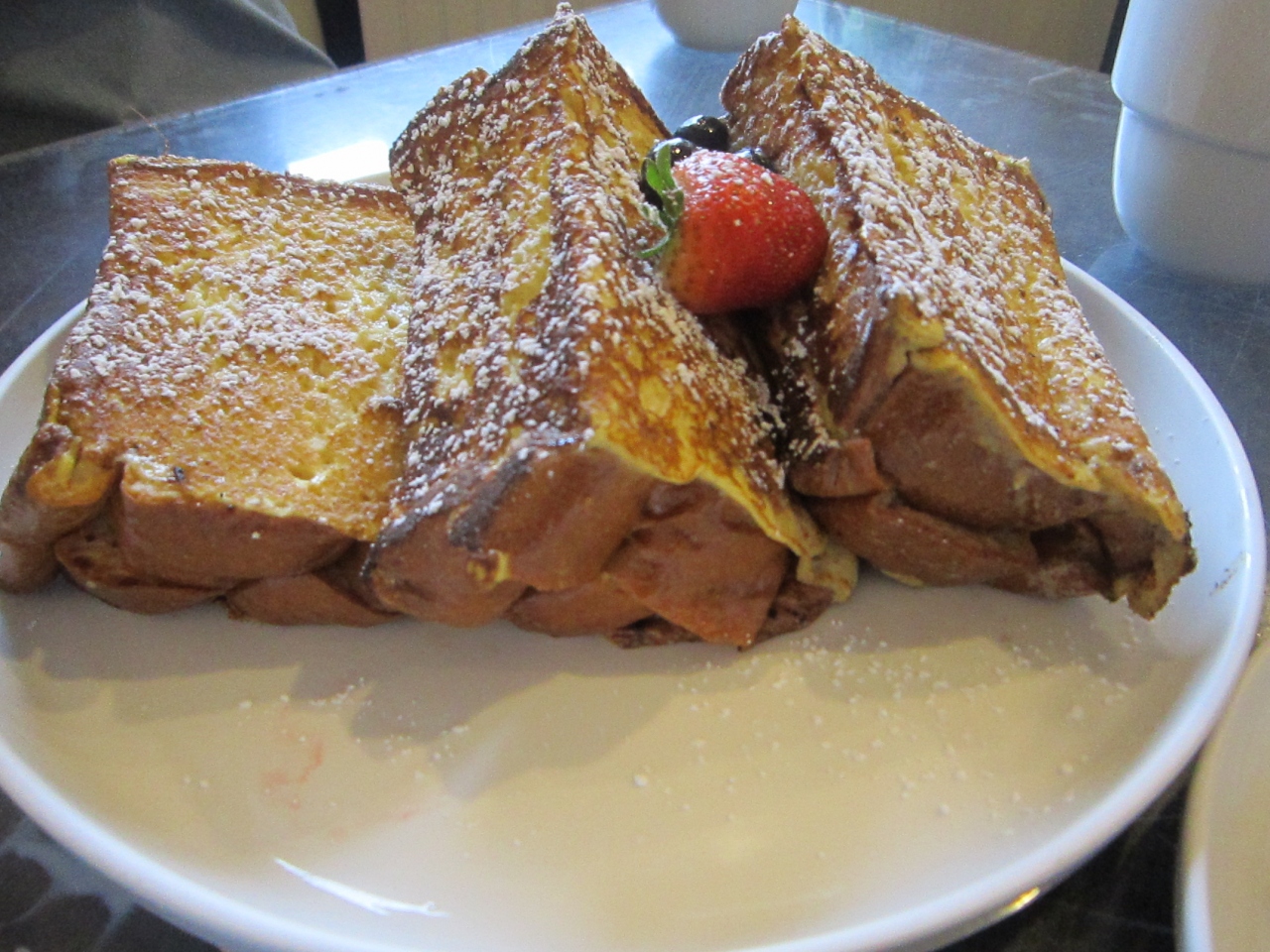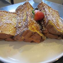 もう一品は、地元の友達がお薦めするフレンチトーストのようなものを3人でシェアしました。