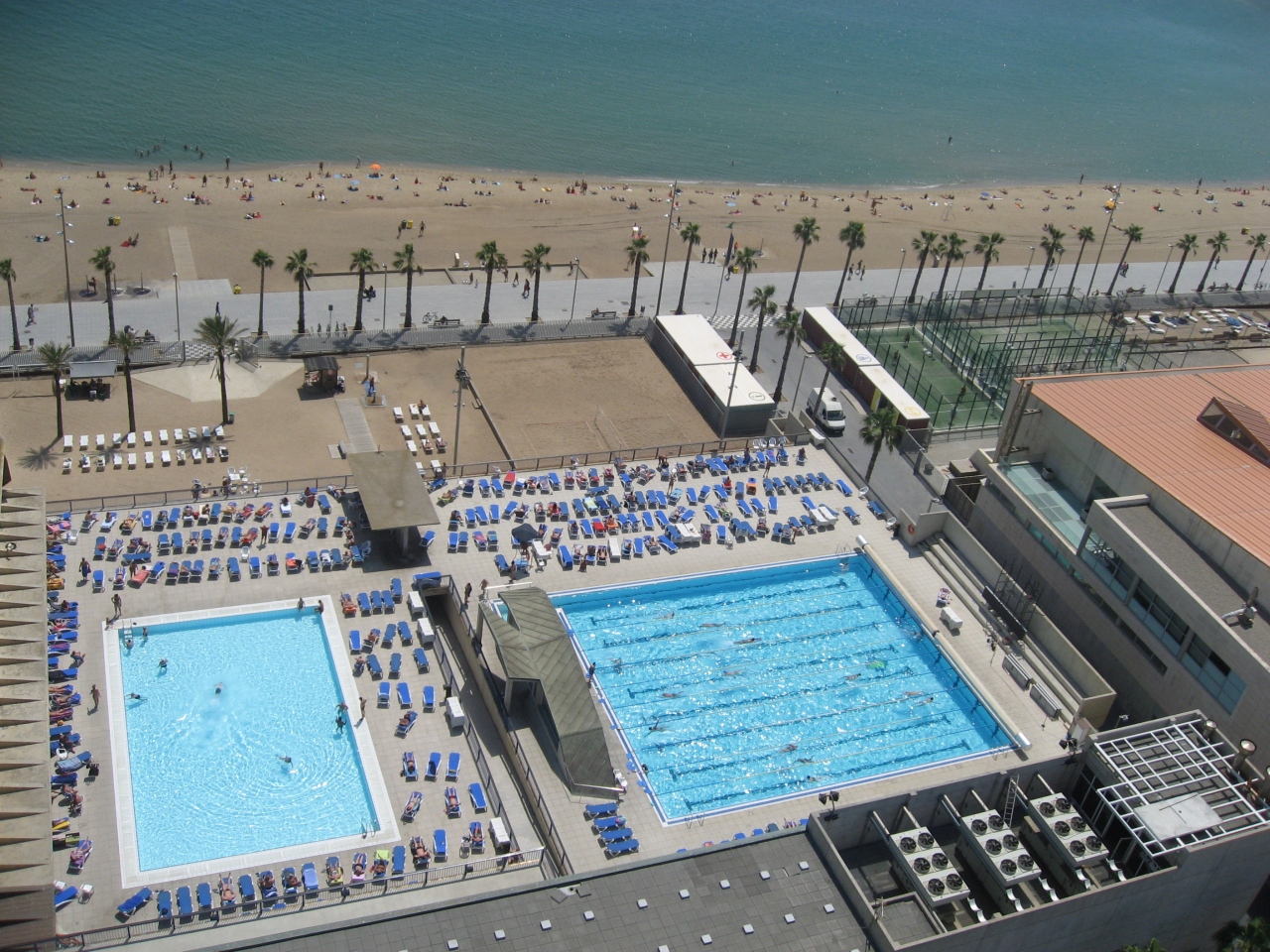 なので、先に上からこのエリアを眺めて位置関係を把握したので分かりやすかった。海水浴場も良く整備されている。大通りは切れ目無くレストランやバルがならぶ。ここのレストランは日本のように写真入りの看板メニューが並んでいる。他の所よりやや高め?昼にも夜も歩いたがどこも熱心に勧誘していた。