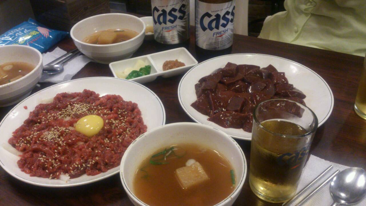 日本ではもう食べることができなくなったユッケとレバ刺しを求めて行ってきました。