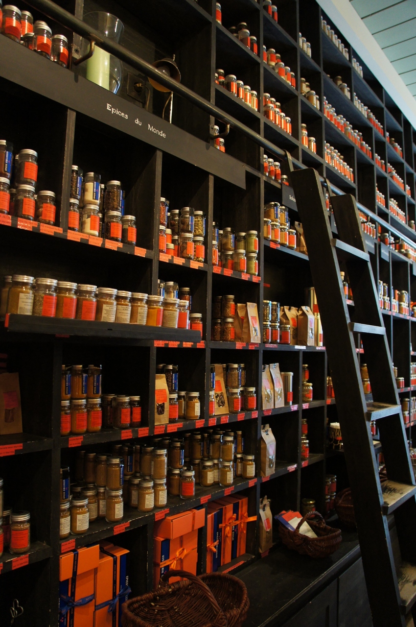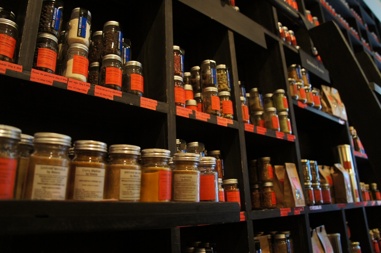 小さな店舗ですが天井まで届くくらいの棚にスパイスがびっしり。