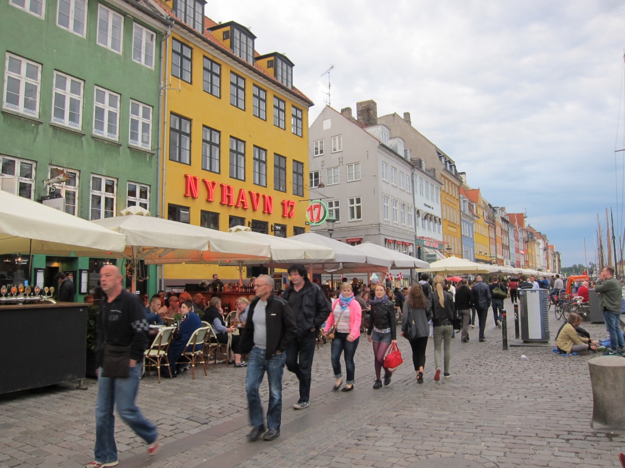 運河とその横に並ぶカフェは、街中の個性的な建物と並んでコペンハーゲンの象徴的な風景です。