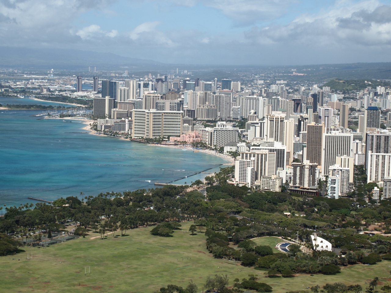 KCCファーマーズマーケットから歩いて行きました。マーケットから入口まで歩いて10分くらいです。道が整備されているので全く問題なく頂上まで登れます。雨の日が続いた後の晴れた日だったので道中もかなり混んでいましたが、頂上は更に人で溢れかえっていて、見下ろすホノルル市街を背景に写真を撮るのはまず場所取りから苦労するくらい混雑していました。しかしながら、ワイキキからも程近く、割と手軽に絶景を楽しめるのでお薦めです。