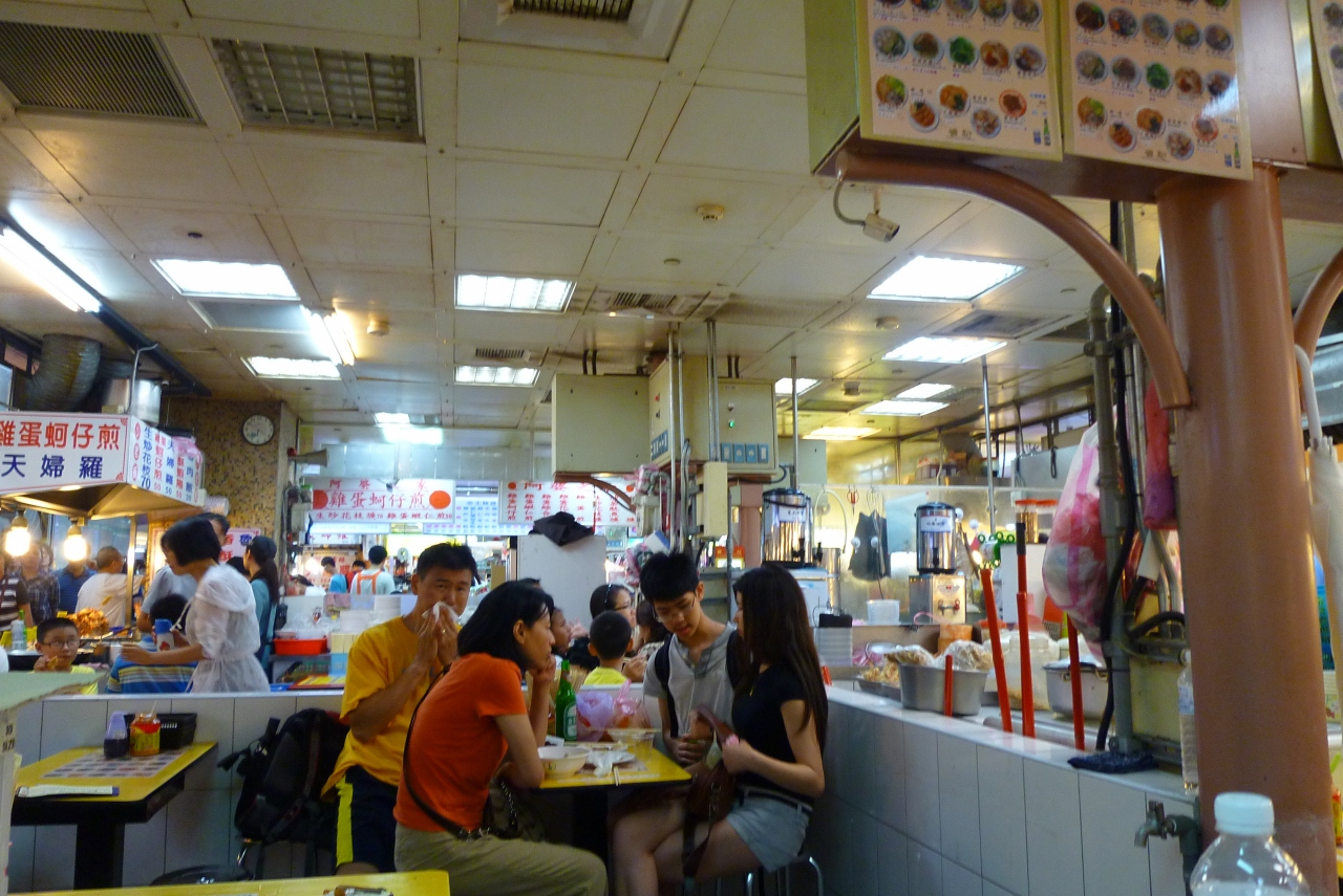 地下に大きな屋台街があり、どの店も写真入りのメニューがあるので、安心して注文できます。牛肉麺、かきのオムレツなど屋台の有名メニューは全てそろっています。ビールも40元とコンビニとそれほど変わりません。ただし、自分が食べた店の味はいまいちでした。地上部はお店ですが、安い靴やアパレルが中心です。屋台の雰囲気を楽しむにはいいと思います。屋台料理だけならば台北駅2階に夜市のメニューをそろえたフードコートがあり、そちらはきれいです。