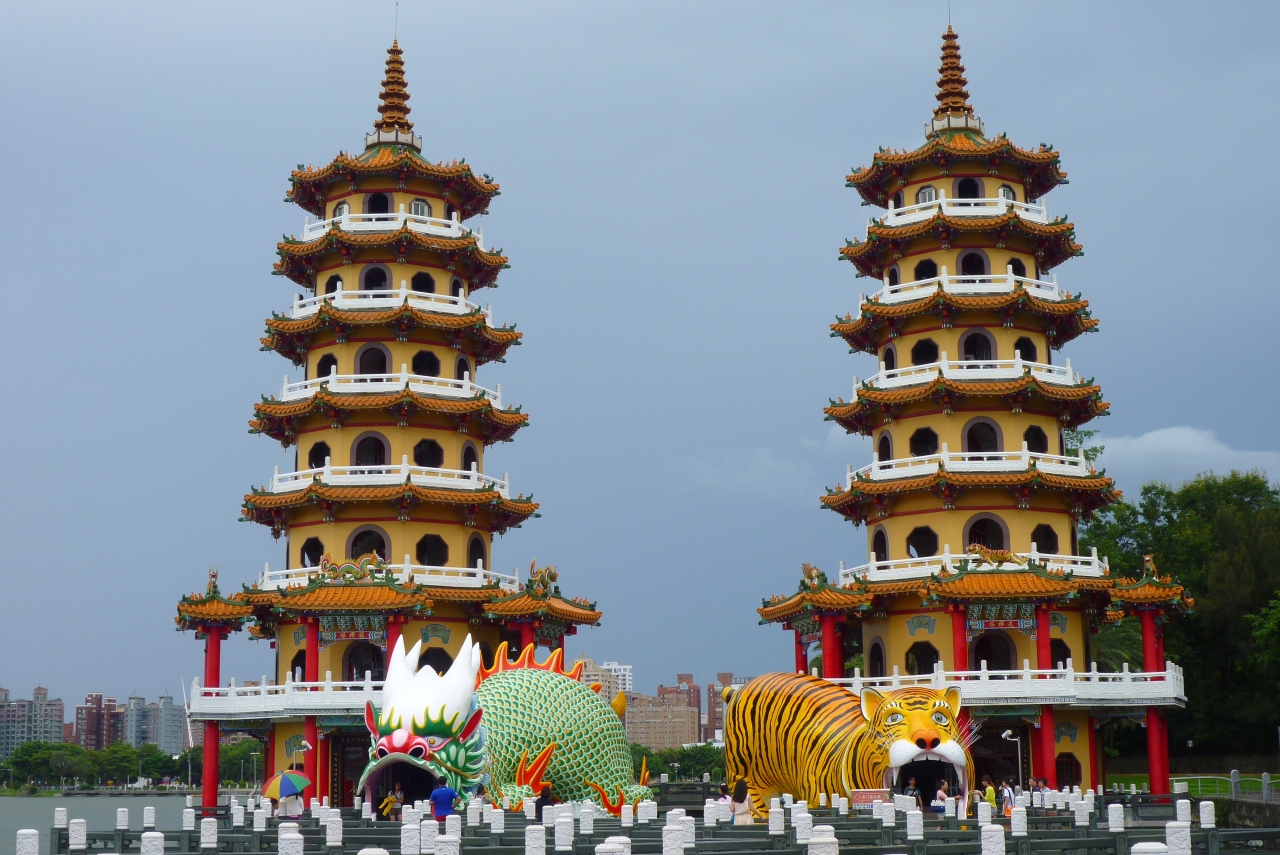 この塔が見たくて台北から新幹線で日帰りしました。7月10日に修復工事が完了しましたので、ご安心ください。塔の上から見る景色は素敵でした。新幹線の左営駅からは35番バスで行きました。駅のインフォメーションで聞くとバス乗り場を教えてくれます。乗り場にあと何分で到着するか表示が出ています。料金は12元でEASY CARDでも払えます。バスの中に次のバス停が電光表示されるので降りるところも間違わないと思います。帰りのバスは、降りたところより少し戻ったところにあります。