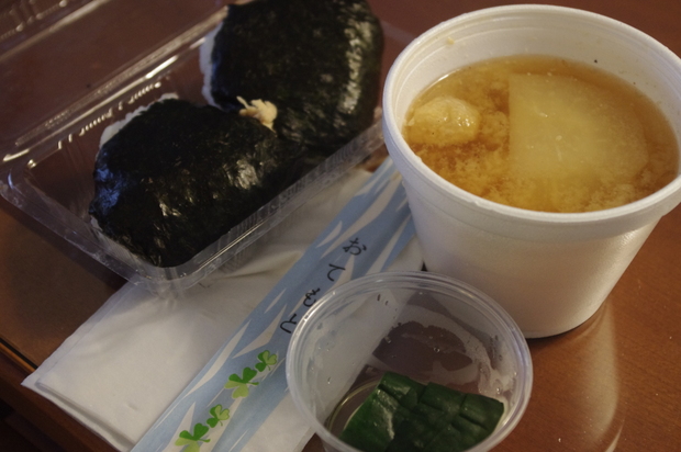 おにぎりは温かくて大きめで、美味しい!