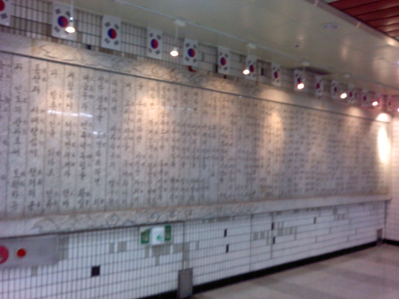 駅構内に韓国独立に関する文献の資料などが展示してあります。