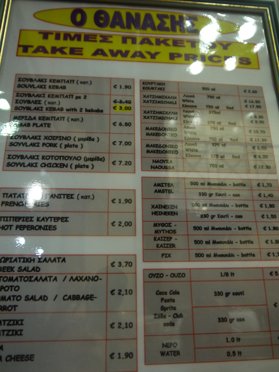 ホテルが近かったので、スブラキピタをテイクアウトしました。