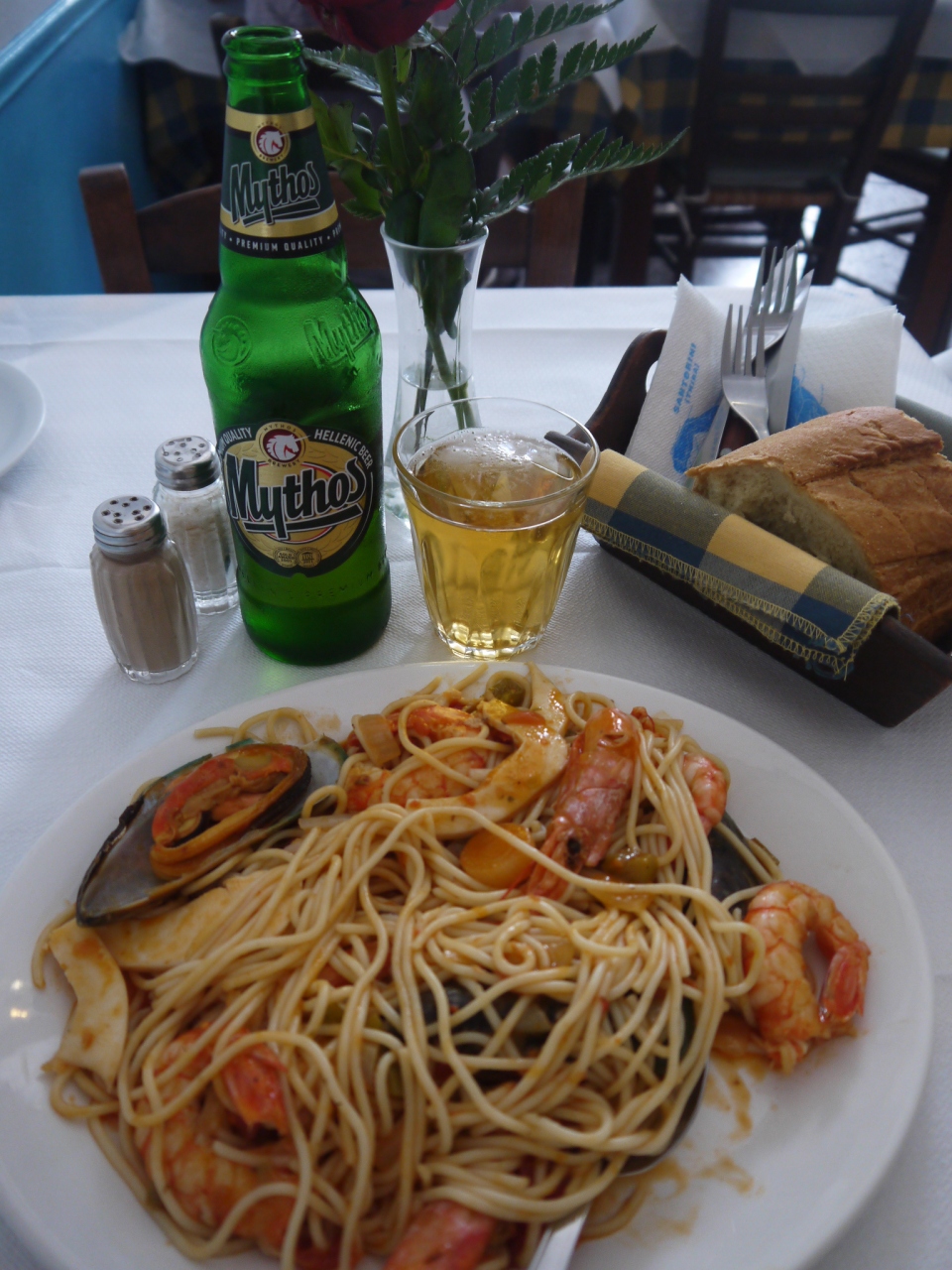 写真がないので、選びにくいのですが、お店の人にもいろいろ聞いて、シーフードパスタを頼んでみました。