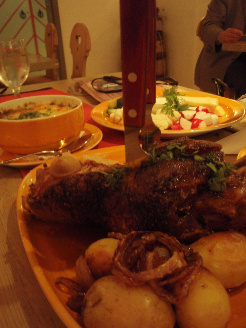 豚の看板とかわいらしい外観に魅かれて入店しました。後でよく見たら某ガイドブックにも載っていました。名物の肉料理を注文したら巨大な肉の塊にナイフが刺さって出てきてその見た目に盛り上がって撮影大会となりました。お味の方はまあ普通でしたがエストニア気分は盛り上がりました。