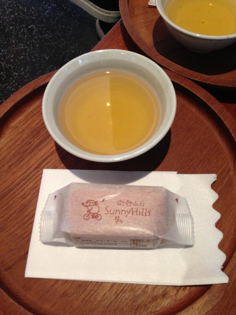 店内に入るとまず皆が席に案内され、商品のパイナップルケーキ1個とお茶が運ばれてきて試食するので、まるでちょっとしたカフェのような雰囲気。