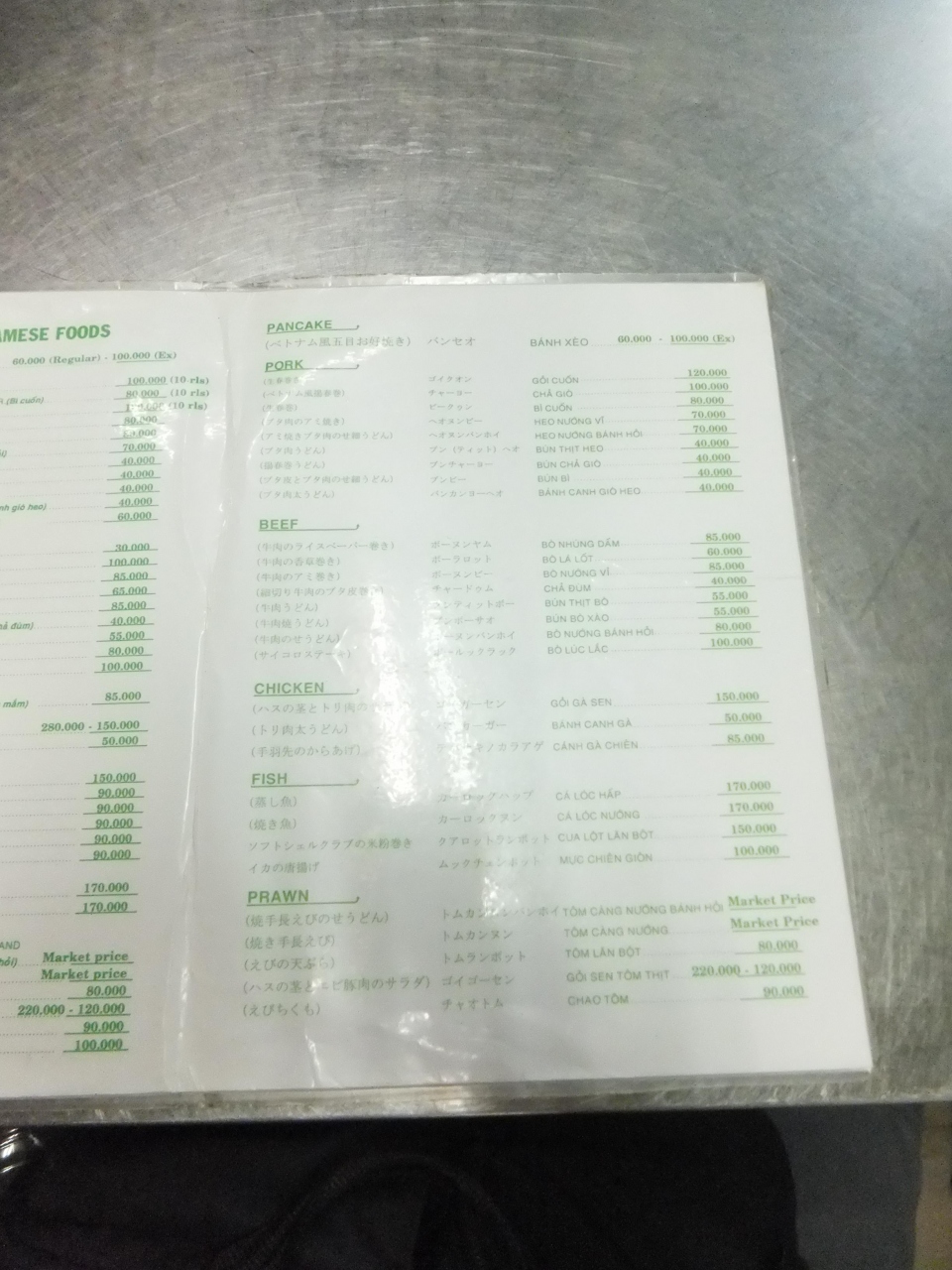 メニューは日本語併記です