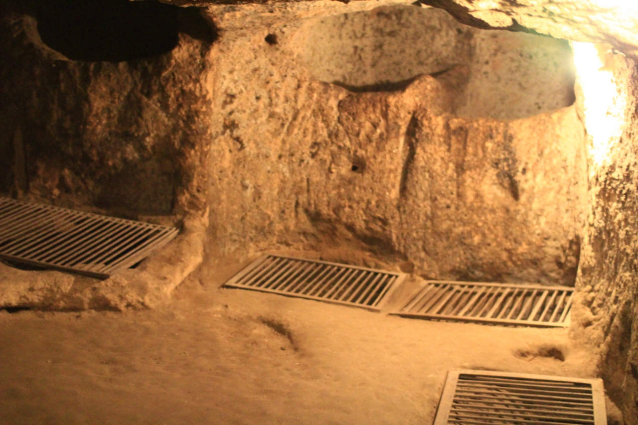 カッパドキアは奇岩で有名ですが、その奇岩を利用して巨大な地下都市が築かれていて、これも世界遺産の一つとなっています。有名なこのカイマクルの他にもいくつも地下都市が築かれていて、そのうち多くは知らぬ場所でつながっているとのことでした。