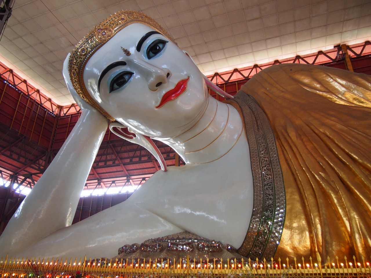 ヤンゴン中心部からタクシーで行きましたが結構遠かったです。寝釈迦仏で有名なパゴダですが、寝釈迦仏以外に見るべきものは何もない感じであっという間に見終わってしまいました。直ぐに帰るのもなんだったので、「睫毛が長いな~」とかいろいろ観察してしまいました。何かのついでに寄る価値は十分ありますが、とにかく遠いのでわざわざ行く価値があるかは微妙だと思いました。でも、かなり大きいしミャンマー独特の色使い(?)の仏像なので、それなりに感動しました。