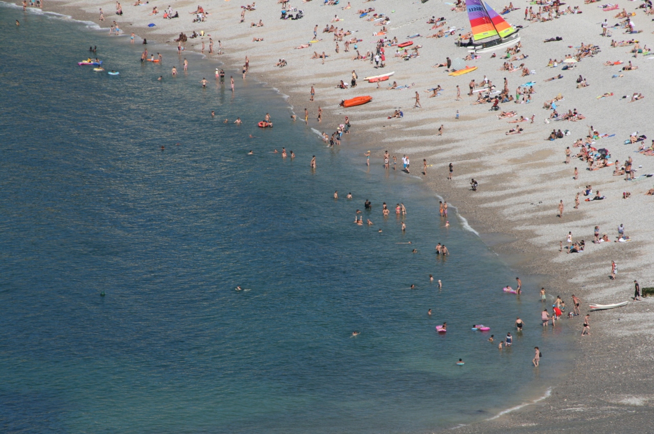 ビーチは砂浜ではなく、大き目の石が敷き詰められていて多少歩きづらいです。