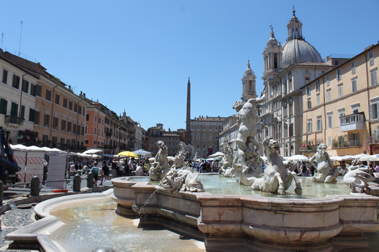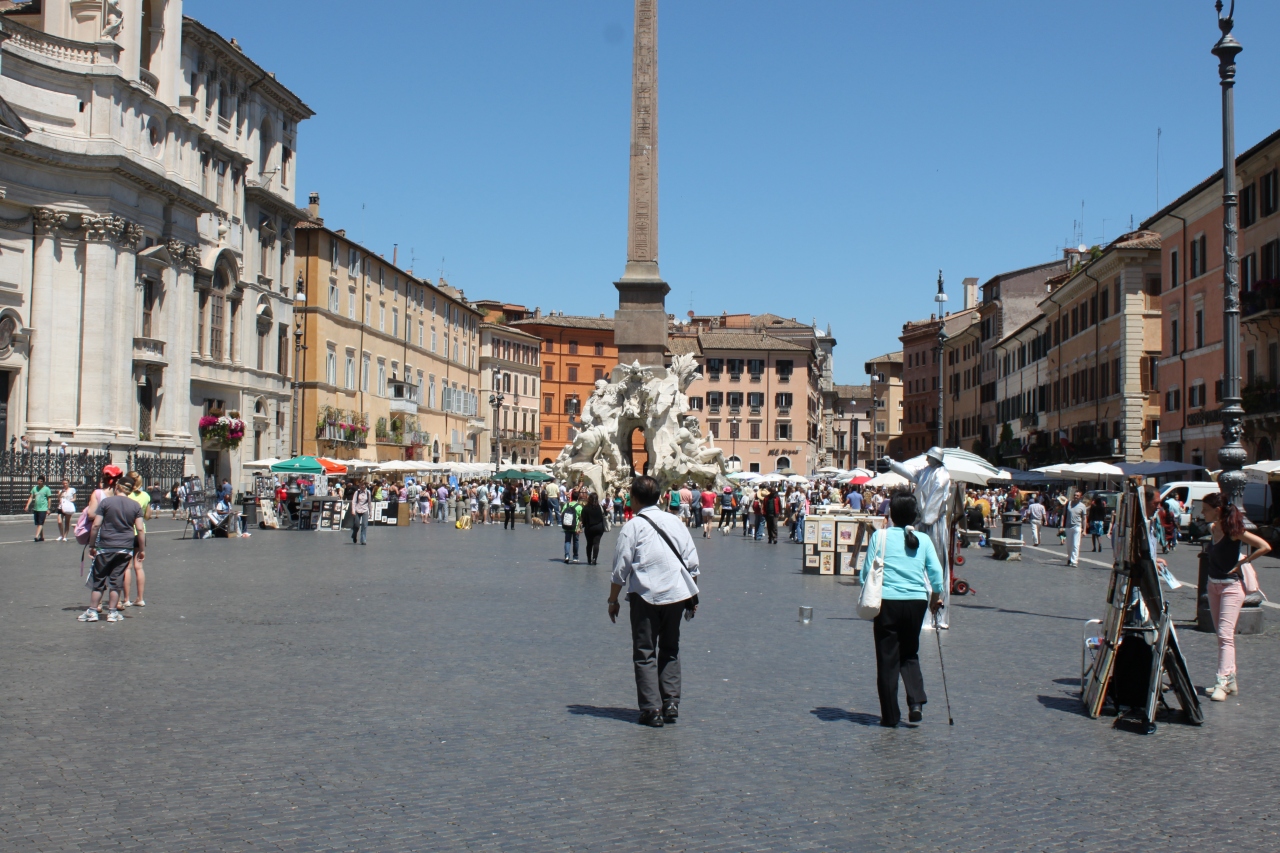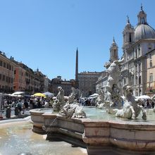 古代の競技場の跡なので広場は字の如く広い。3つの立派な噴水があって観光客がくつろぐ姿も見える。周囲にはたくさんの店が並んでいてテラス席も多い。レストランの価格は観光地値段でやや高めのようだが、昼には日本で言うランチセットなどもあった。ローマを代表する広場なので時間が許せば行ってみると良いでしょう。