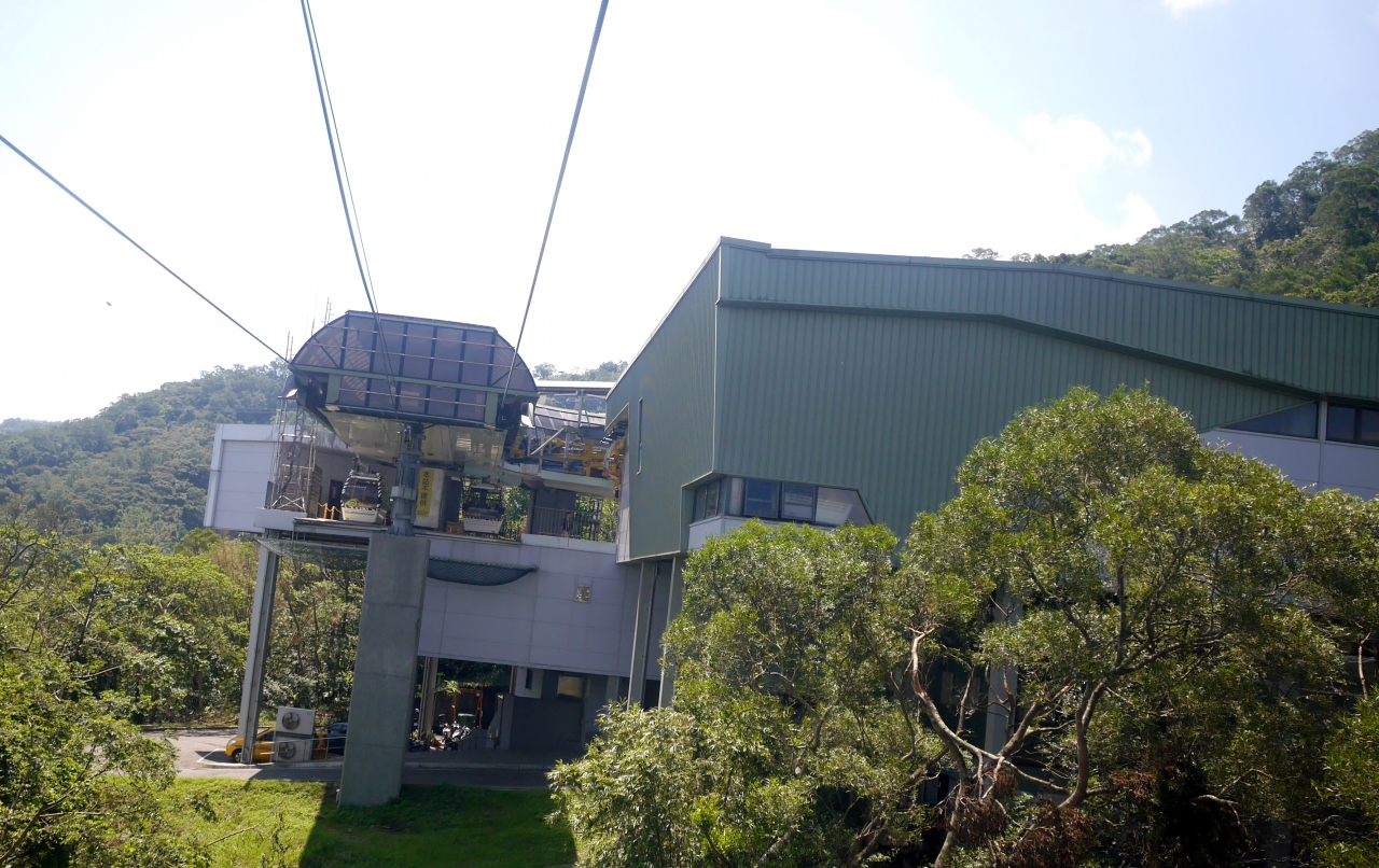 猫空へいく全長4033m,高低差275mのロープウエィ,途中駅が二つ,方向転換駅が二つある.途中での方向転換が面白い.床が透明なクリスタルゴンドラもある.結構待っている人が多いので乗るまで時間がかかる.一般車両は割と早く乗れる.景色はとてもよい.台北のオアシスになっているのがよくわかる
