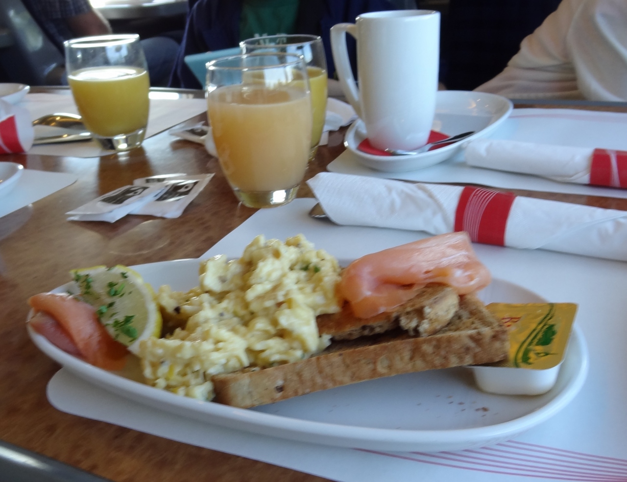 サービス 平日の一等車は無料の飲み物(朝以外はアルコールも)と食事付です。土日にはこのサービスがありません。ただイギリスらしく、朝は美味しいのですが、夕食はネタレベルでした。写真のポテトが黒焦げなだけでも想像がつくかも知れませんが、ソースも見かけはトマトソースですが、味は蜂蜜が主体でした。これだけすごいと、かえってネタとして楽しめましたので、「イギリス料理はまずい」という噂を確かめたい方にはお勧めかも知れません。wifiも無料です。