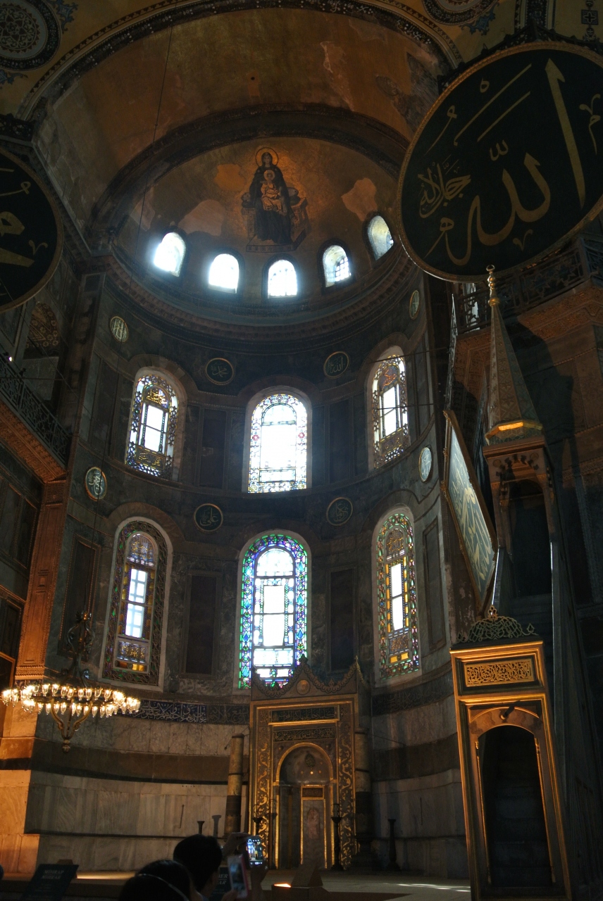 イスタンブールの歴史を象徴する建物。現在はモスクではなく博物館になっています。入口でイヤホーンガイドを借りました。朝一番で行ったので混んでいませんでしたが午後は並んでいました。内部はたいへん見応えがありガイドを聞きながらゆっくり回りました。