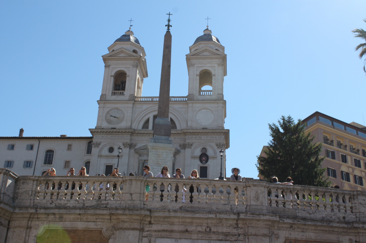 スペイン階段を上がると広いバルコニーといった趣のこの広場に出る。ここは教会の前庭でもある。ここに上がらず、下で写真を撮るだけの人も多いようだが上がってくると市内も見えるし、気分も良い。広場の下の「舟の噴水」や階段は観光客でであふれていても、ここなら幾分写真も撮りやすい。
