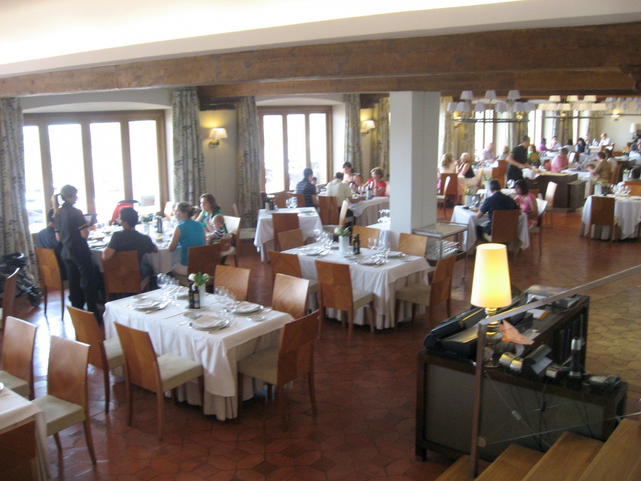 景色を楽しむため&休憩にコソドベール広場からタクシーで行きました。10分ほど、タクシー代は7ユーロ。1時過ぎだったがテラス席は食事をしている人はいなくて皆ワインやソフトドリンクを頼んでいた。私たちはワイン2杯とオレンジジュース。9.9ユーロ。