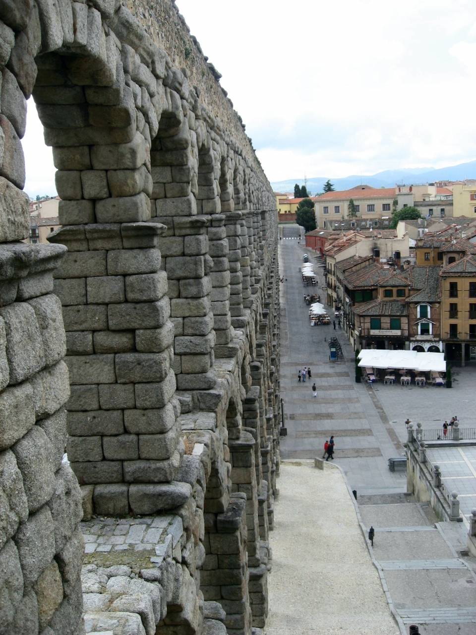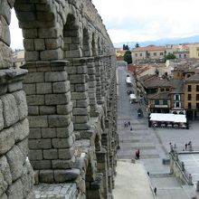 バスを降りて橋の下をくぐると「アソゲホ広場」。広場にはレストラン、土産物店、観光案内所がある。この水道教は階段で上まで上がれる。是非上がって欲しい。上からはピンクの屋根の家々や、周囲の景色が見え、水道橋のすばらしさも実感出来る。高さはビルの8階ほどだそう。来る事が出来た幸せを感じた。