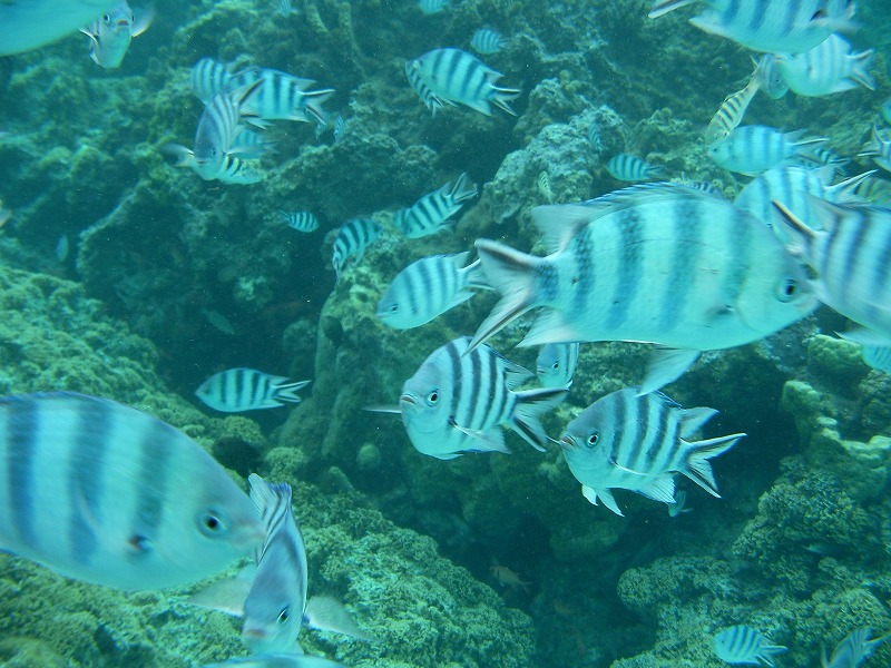 各ホテルからの参加者を乗せてまずはエイに餌やり。手のひらに乗せた餌をエイがヒョイと吸い込む感覚が忘れられません。この日以来エイが好きになりました。