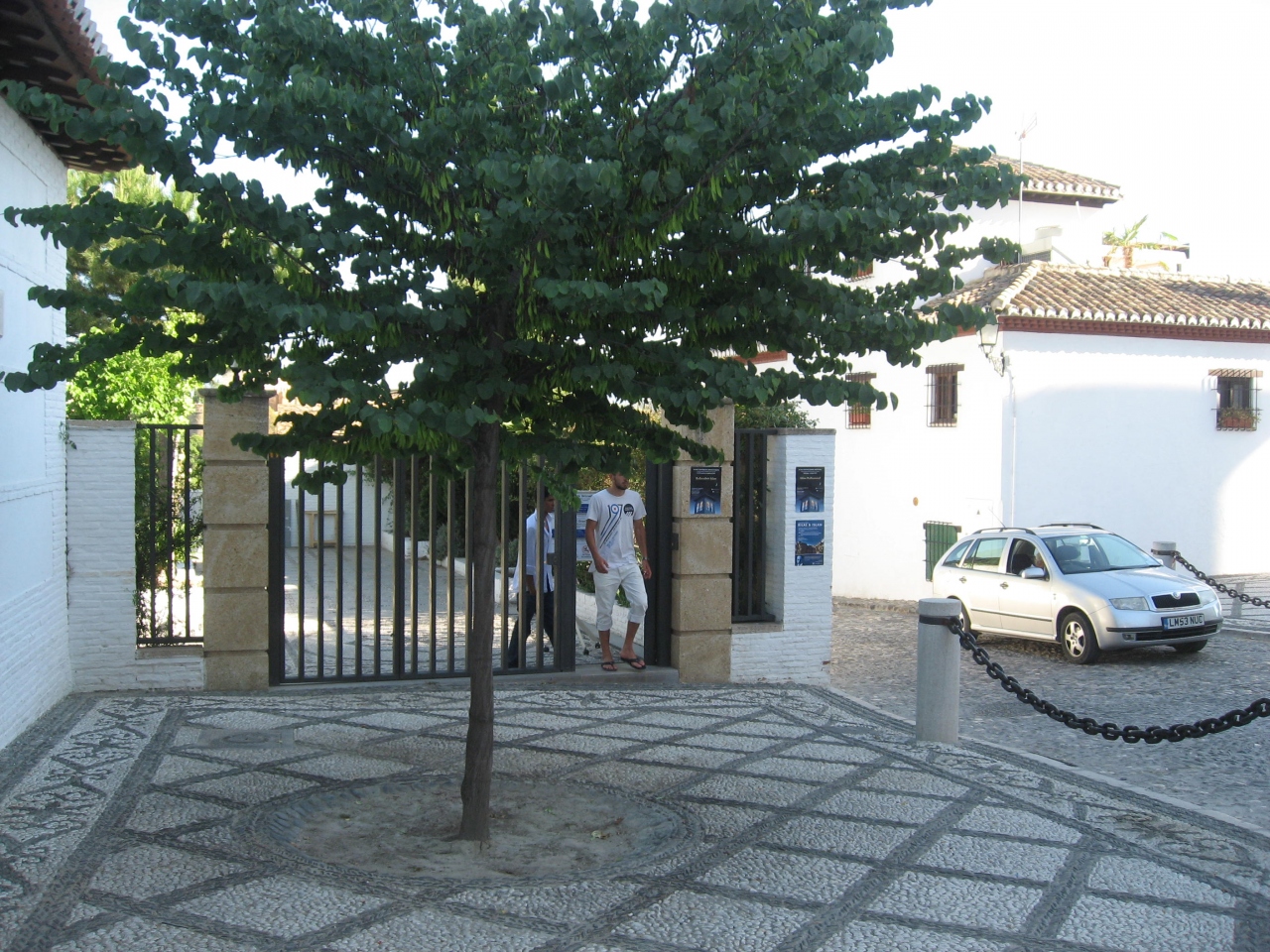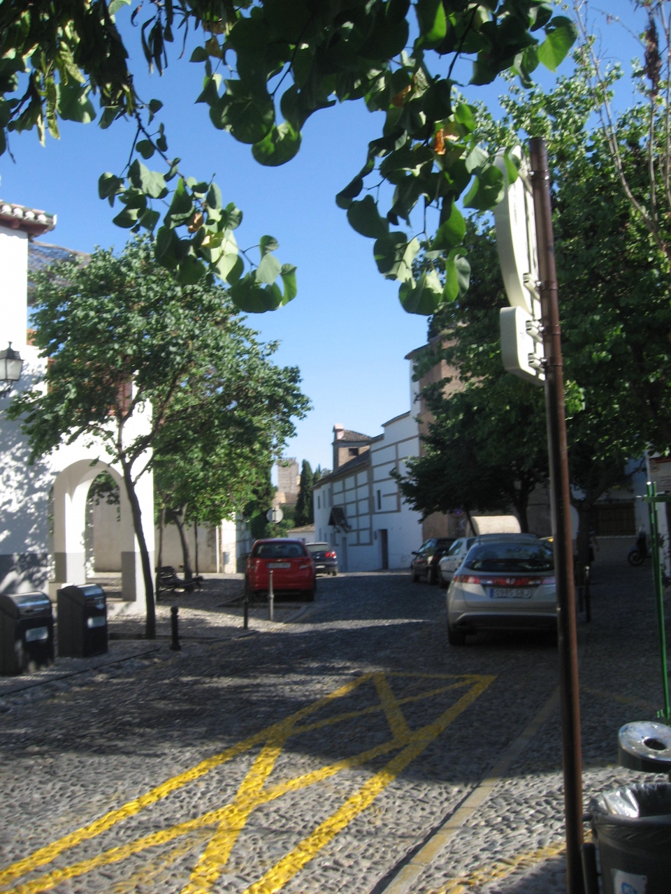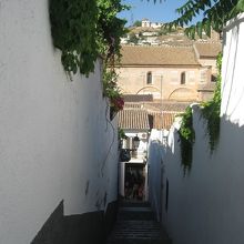昼間は展望台に行く途中この地区を歩き、また夜はフラメンコの後、夜のツアーで散策した。昼見た時、ある家では白い塀とマッチした素晴らしい中庭と、手入れされた花々が見えた。間口は狭いけれど奥行きの広いらしい立派な家も多かった。