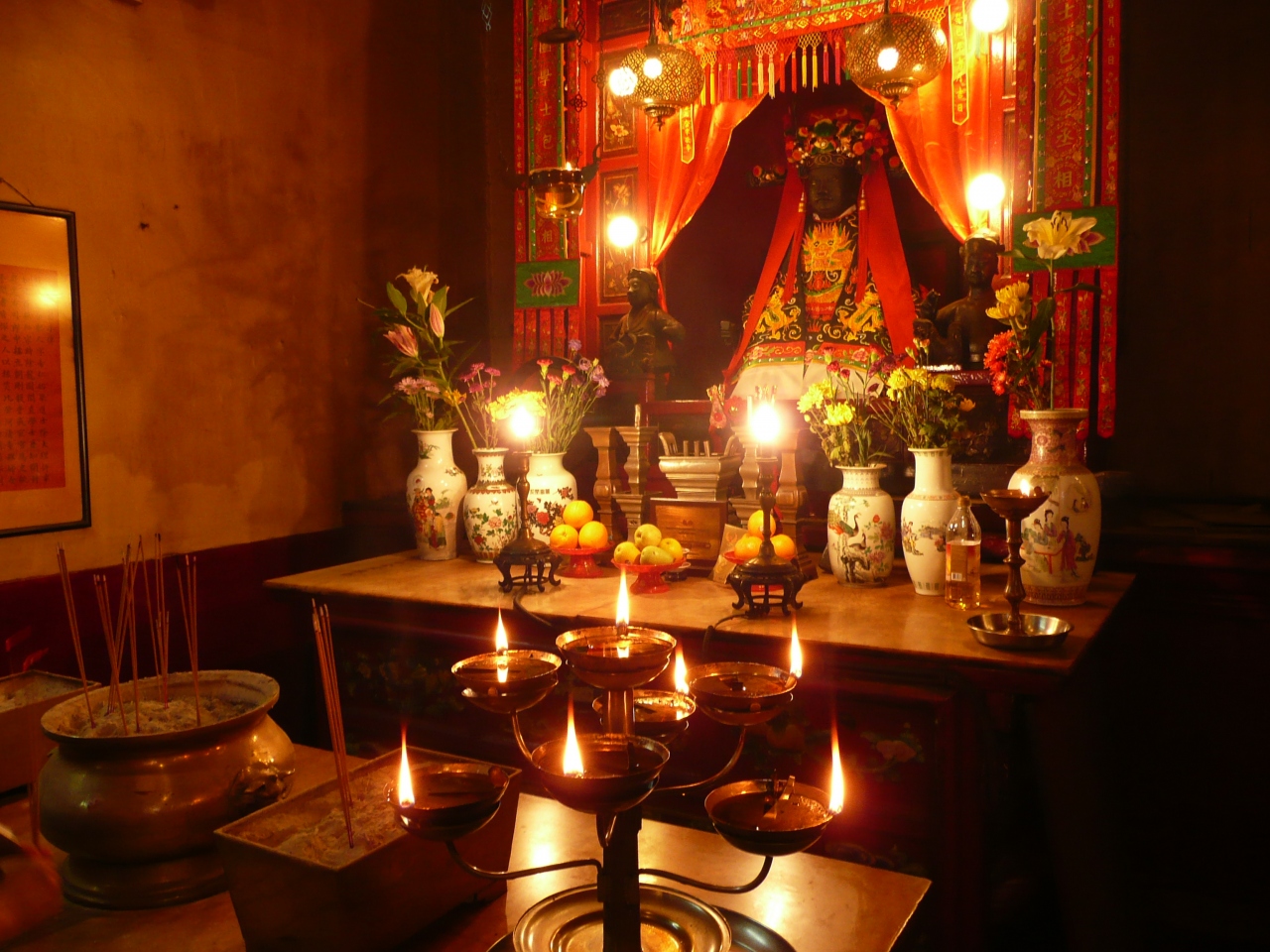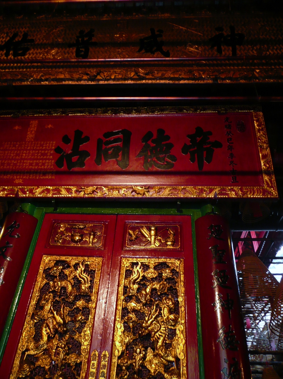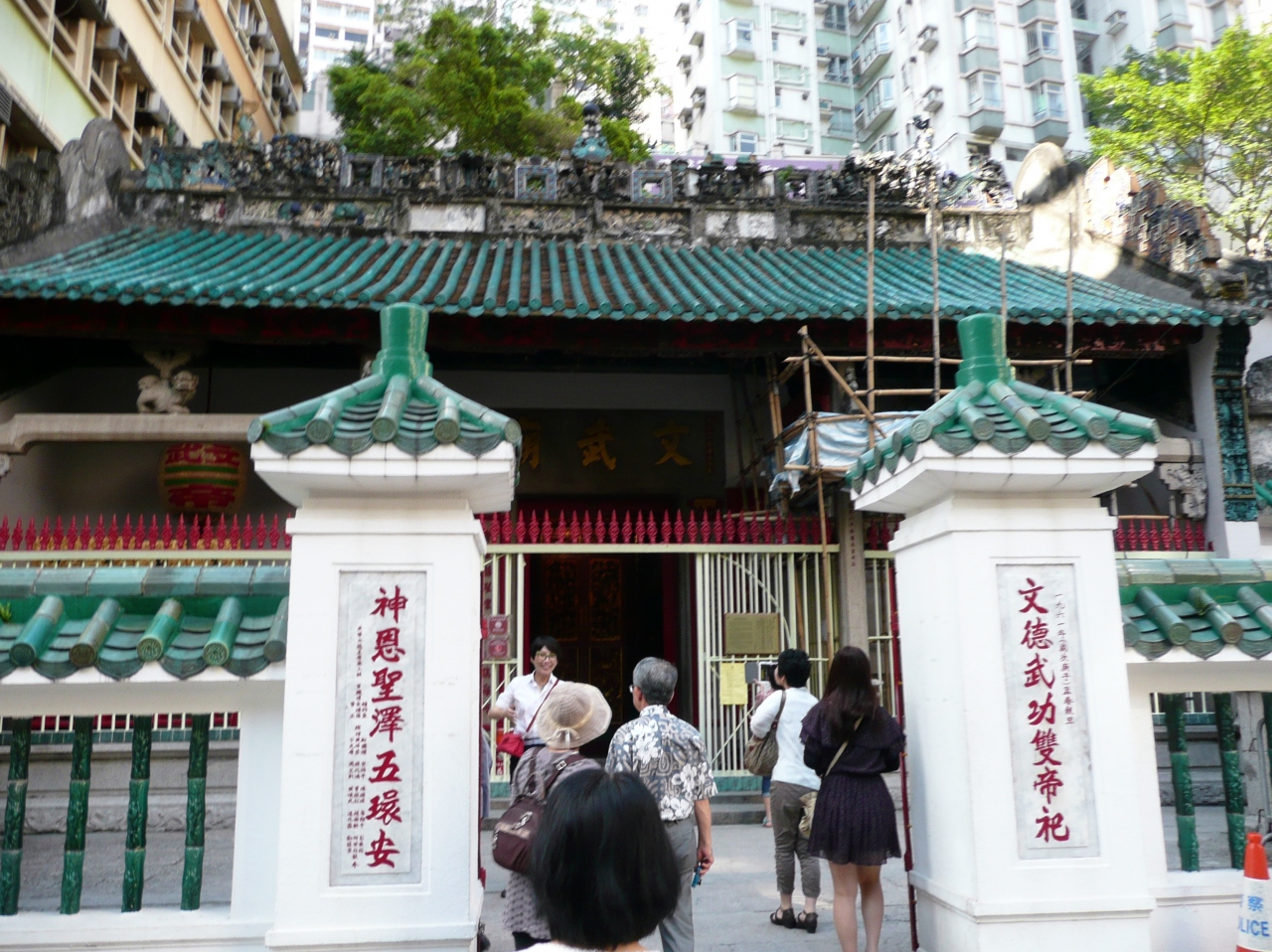 学問の神様関羽を祭っている小さな廟。坂の途中にあります。周りは高い建物に囲まれていて、不思議な雰囲気です。