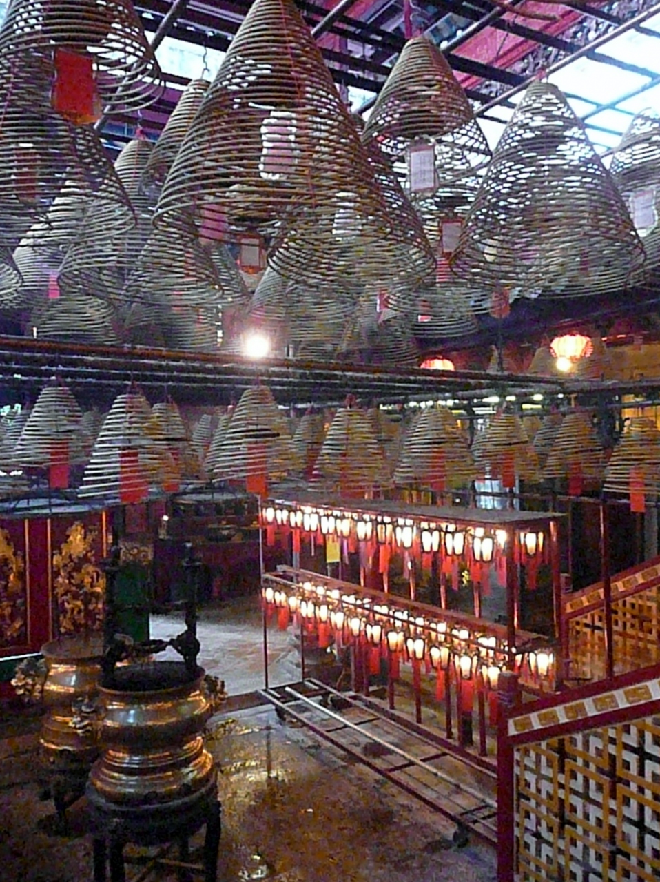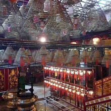 中は、渦巻きの線香がたくさんぶら下がっていました。長い時間をかけて、燃えるそう。