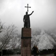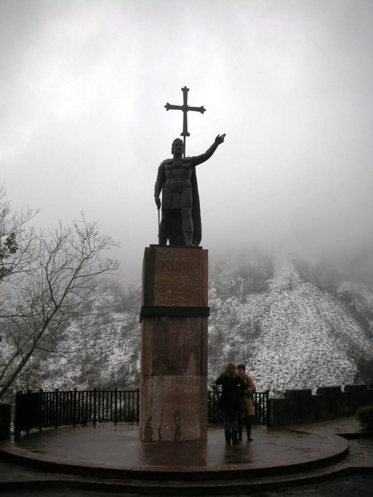 教会の前にはレコンキスタの英雄ペラヨの像
