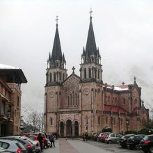 1877~1901年にかけて紅色石灰岩を使って建てられた、ネオロマネスク建築とのこと。1777年にコバドンガの聖母を祀る教会が焼失してしまった為、ベントゥラ・ロドリゲスという建築家が聖地として教会の再建を思いついたそうです。この案は長い間(1世紀ほど)放っておかれましたが、アルフォンソ12世が興味を示しようやくこの教会が建てられた様です。教会の傍らには、レコンキスタの英雄である西ゴート王国の将軍ペラヨ(Don Pelayo)です。