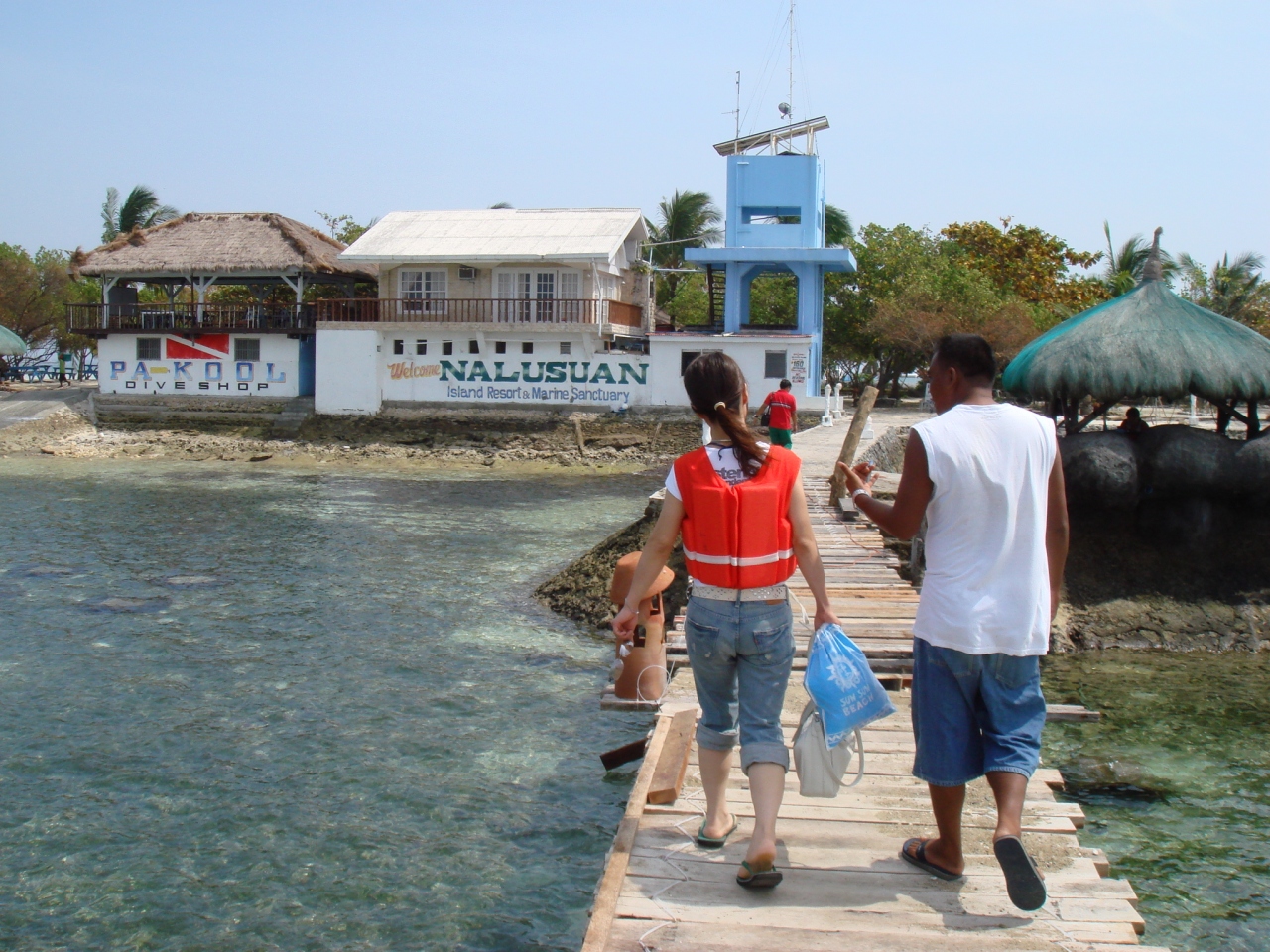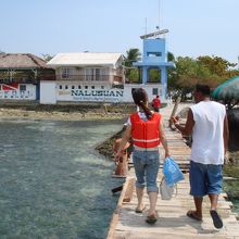 島が近づくと、長い桟橋が現れます。その桟橋を歩いて島に入るようになっていました。