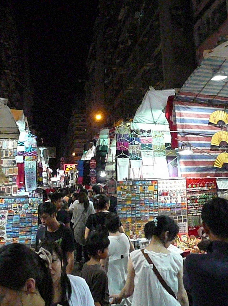 一本の道の両脇にいろんな店が並んでいます。女人街というだけあって、女性ものが多い。食べ物の屋台はありませんでした。