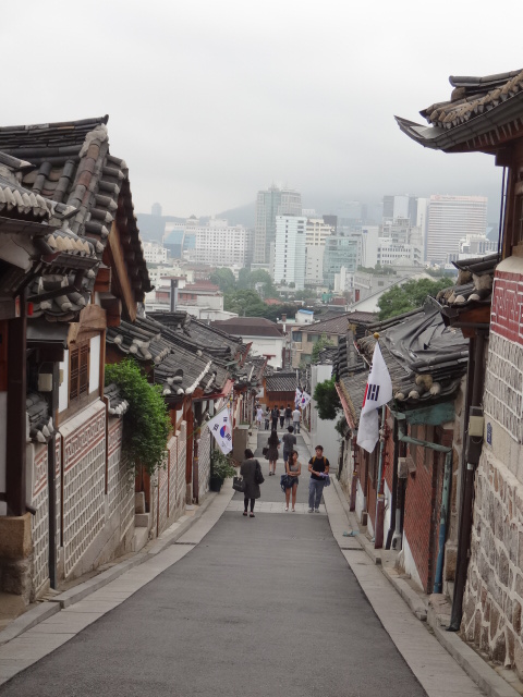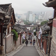韓国様式の伝統建築が立ち並ぶ一体です。インフォメーションブースで地図をもらえるので、地図を頼りに歩いていくと、お目当ての景色にたどりつけます。坂が多いので、暑いときはかなり疲れますが、カフェや伝統茶を楽しめるお店も多いので、ゆっくり行かれることをお勧めします。