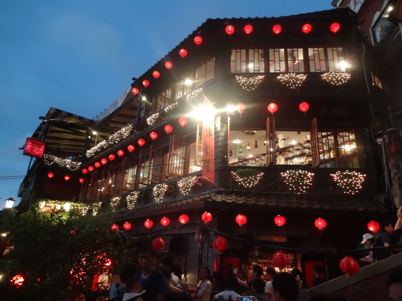 瑞芳の駅からタクシー(180元定額)で行きました。やっぱりすごい人でした。夕方に行き提灯に明かりが点くのを待ちながらぶらぶら。 暗くなってくる頃には団体客が増えはじめました。 ノスタルジックな町でした。 瑞芳からの電車は座席がないといわれ無座の切符を買い台北に戻りました。