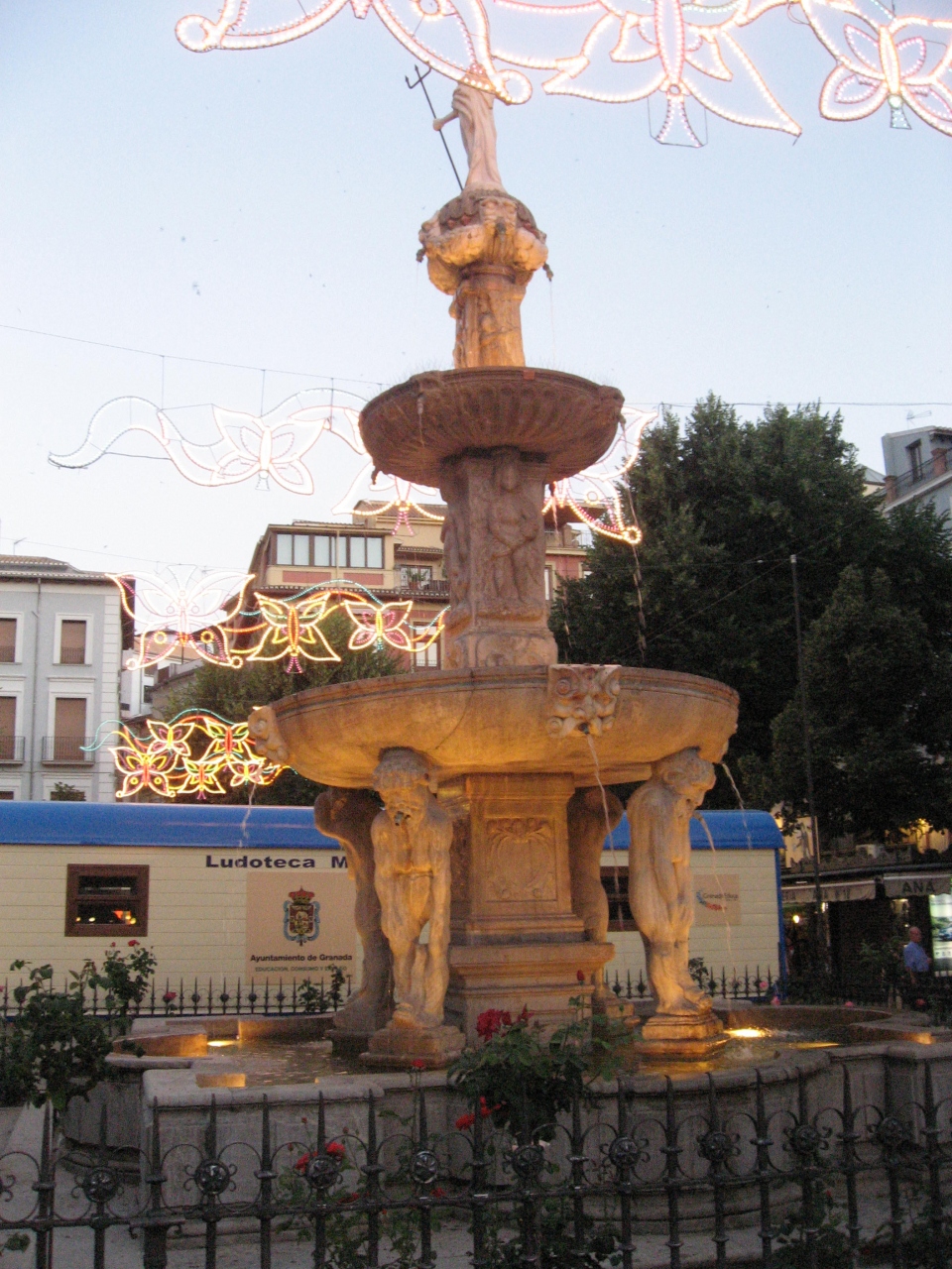 大きな特徴はなく、ありきたりな感じだが、カトリコス通りに面していて目印として役に立つ庶民的な広場。噴水やバルもあるし、レストランのテラスも出ている。通りを挟んだ東側にはアルハンブラ宮殿に向かうゴメレス坂があるのでここを上がっていくのも楽しい。