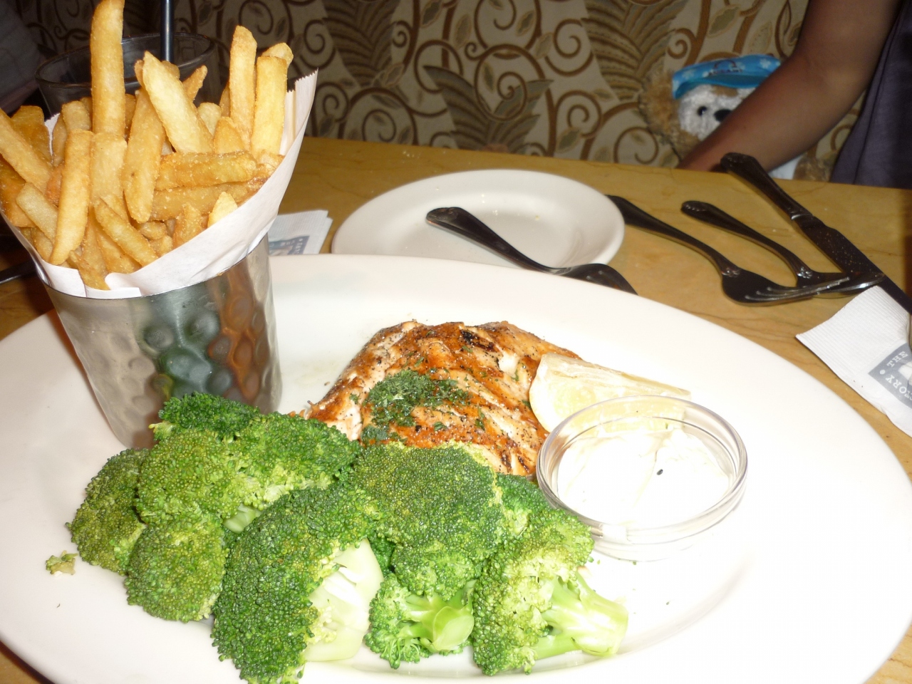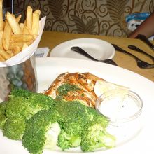 ハワイのボリューミーなコッテリ料理に飽き飽きした頃に食べたサーモンステーキ(付け合わせは、森のようなブロッコリー!)が一番のヒットでした。
