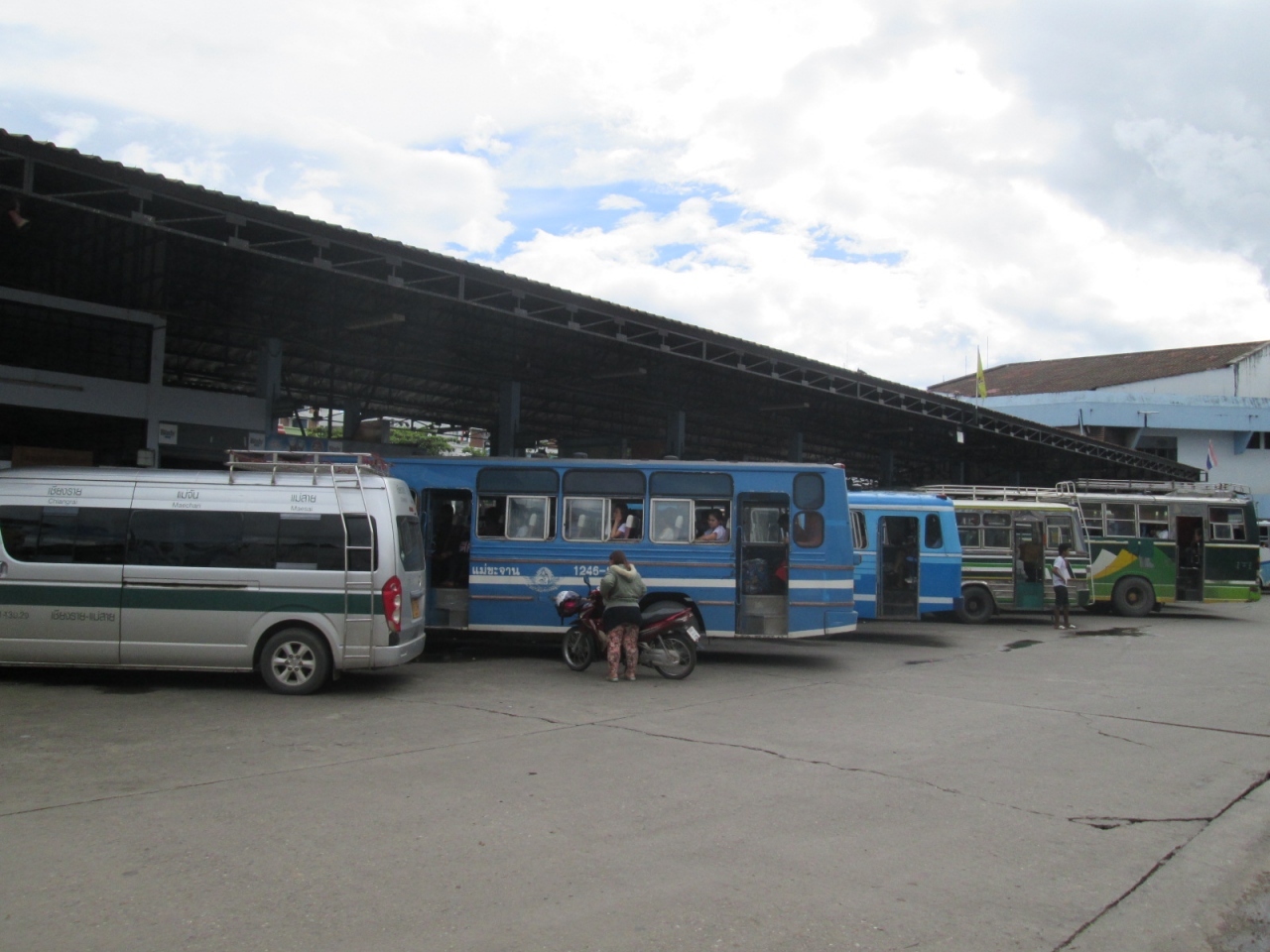 ナイトバザールに隣接する第1バスターミナルです。何年か前に第2バスターミナルが出来たあたりは、チェンマイからのバスも第2バスターミナルが終点だったと思うのですが、市内中心部から遠く、かなり不満の声が出たのでしょうね、現在は第2バスターミナル経由で第1バスターミナルが終点になりました。おそらく造られた場所には政治的利権が絡んでいたのではないでしょうか…まるで成田空港みたいに…。今回もチェンマイからグリーンバスを利用しましたが、第2バスターミナルで降りた人は2人だけ。利用者も少なく、すでに屋根が腐りかかっていました。さて第1ターミナルですが、かなり老朽化しており、利便性だけが取り柄のバスターミナルです。バスターミナルだけでなく、停車しているバスやミニバスも年季の入った車体が多いですし、周囲を囲むお店も同様ですから、グリーンバスの最新VIPバスなどが到着すると、かなり目立ったりするほどです。いい加減にリノベーションした方が良いと切に思います。ターミナルの外にはチェンライ独特の小さな青いソンテウやトゥクトゥクが客待ちしていますが、高い値段を言うことは少なそうです。今回はトゥクトゥクでメリディアンホテルまで80THBでした。それと通りの向かい側には、私が個人的に大好きなコネクト・カフェがあります。バスの待ち時間をここで過ごすことも楽しみです。