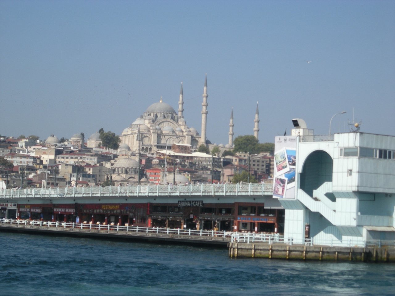 トルコ10日間周遊ツアーの最後を飾ったのがイスタンブールを縦断する「ボスポラス海峡クルーズ」。ヨーロッパとアジアを分けるボスポラス海峡をクルーズできる船(業者)はいっぱいあるようですが、今回は我々のツアーの人たちだけの貸切船で2時間近くクルーズしました。安いクルーズ観光もありましたが、貸切の場合はゆったりできて、荷物の心配もなく、船の中を右に左というように自由に動きまわることでできたので、満足しています。もちろん、ガイドさんは日本語堪能なので、事前知識なしでも楽しむことができますよ。ちなみにガラタ橋をくぐって、第二大橋まででUターンするコースでした。夏のトルコは晴天が多く、今回のすべての日程は晴天でした。このクルーズも晴れており、海風ととても心地よい雰囲気でしたね。