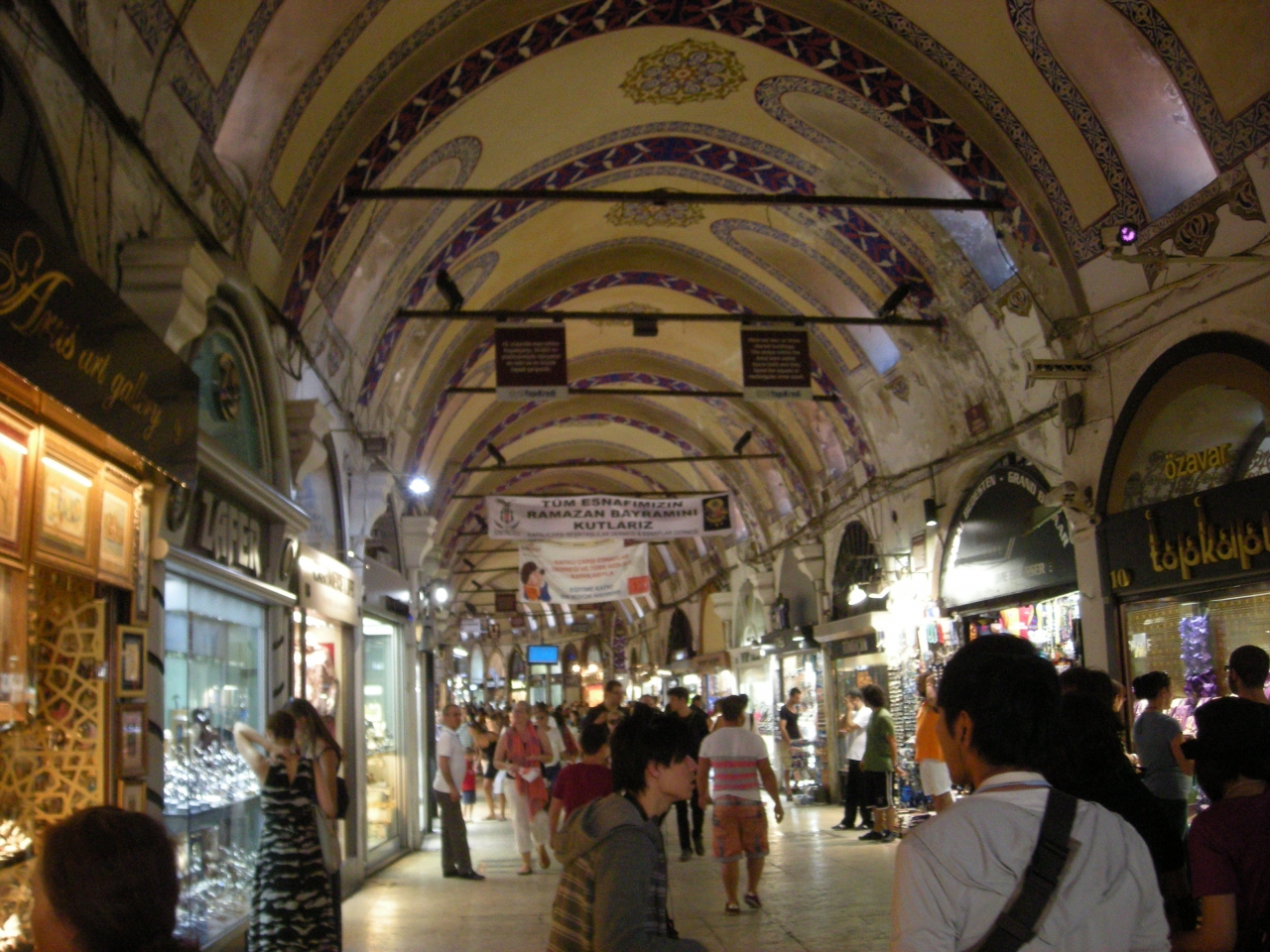 イスタンブールの旧市街においての歴史地域にあるかの有名な市場がここ「グランド・バザール(カパル・チャルシュ)」。ここはトルコ語で“Kapali Carsi(カパル・チャルシュ)”という「屋内市場」という意味をもつグランドバザールで、「グランドバザール」という言葉自体も日本でのバーゲンの言葉でも有名ですね。なんでも、ここはオスマントルコ帝国時代から続く歴史的建造物で、中の通りはまるで迷路のようです。とにかく、いっぱいお店が3,600を超える世界最古で最大規模とのこと。一度、入り込んだら迷子になってしまうくらい。お店の番号を確認し、どの入口から入り、どこの出口から出るかなど、事前に確認した方がいいですよ。事前に何を買うかなどを検討した方が時間的に効率的です。買い物時には、必ず値切りましょう。