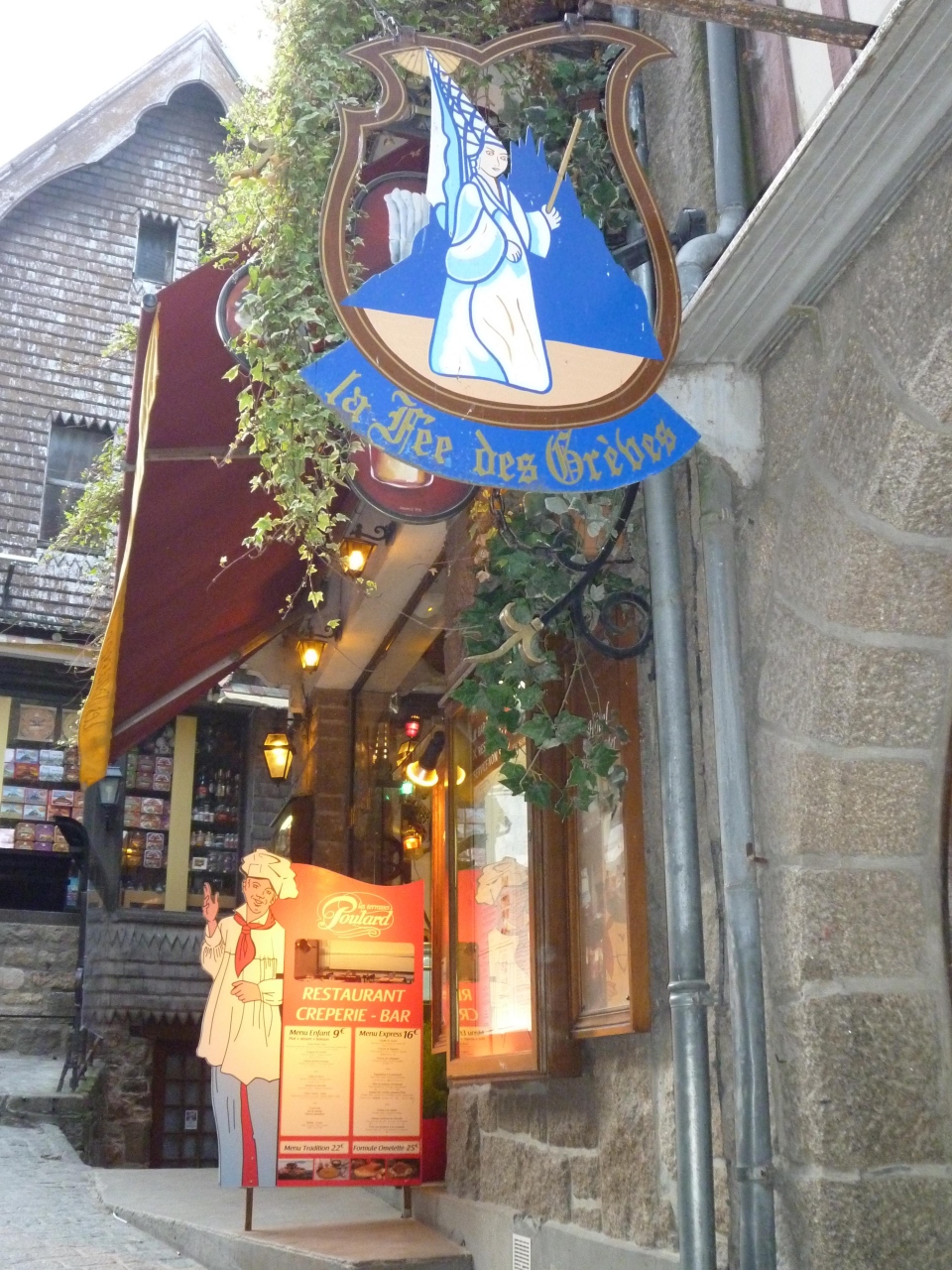 ランチは本店で有名オムレツをいただきました。島の外のホテルに泊まり、夜また戻ってきて散策してからここを見つけて入りました。お手頃な値段でお腹にもちょうど良い大きさでオムレツがありました。知っていたら、本店じゃなくランチでここに入ったなあ。オムレツの他にクレープもあり、ブルターニュの味が楽しめました。