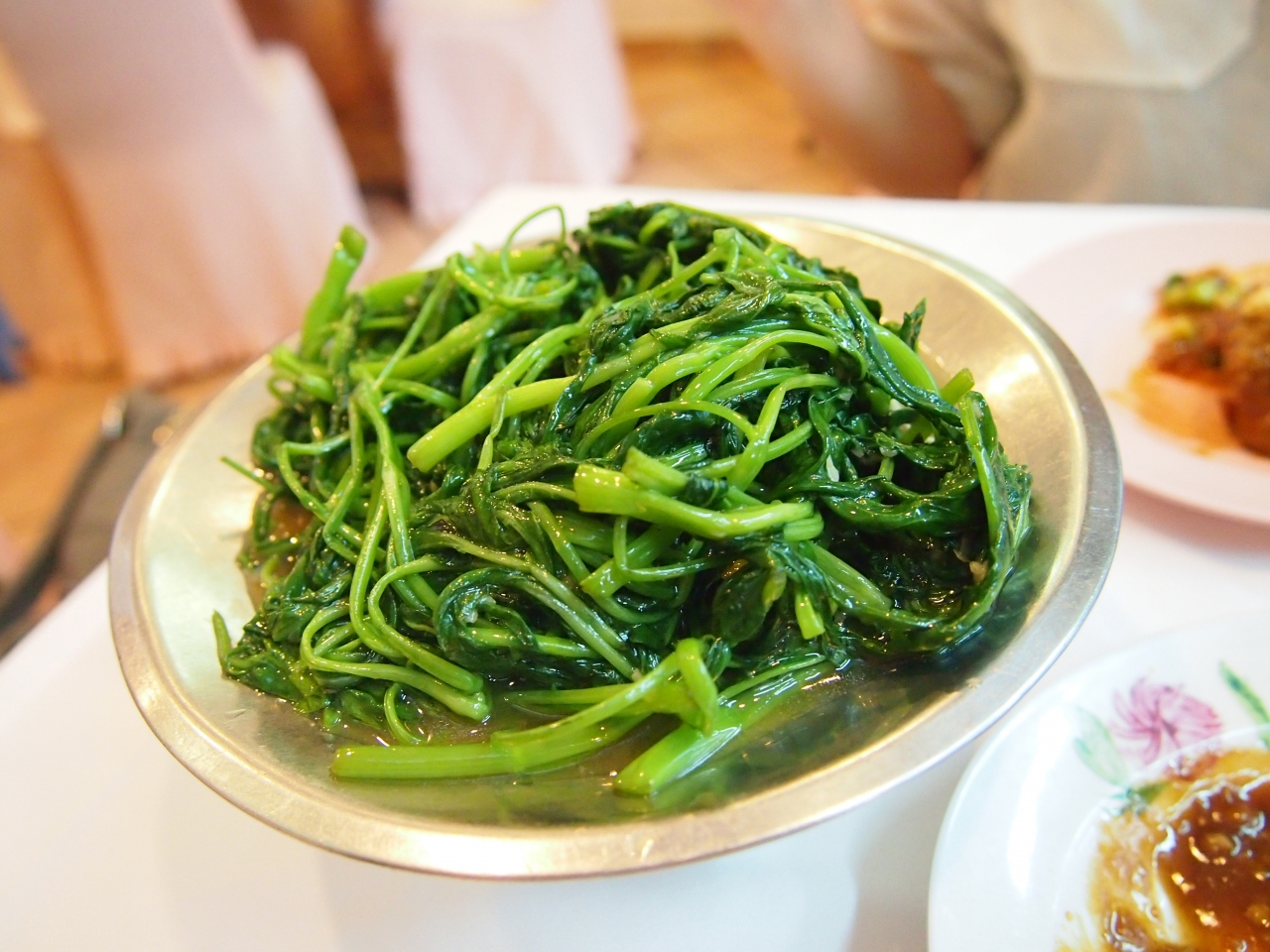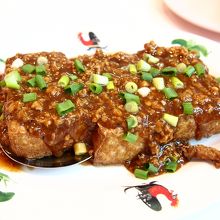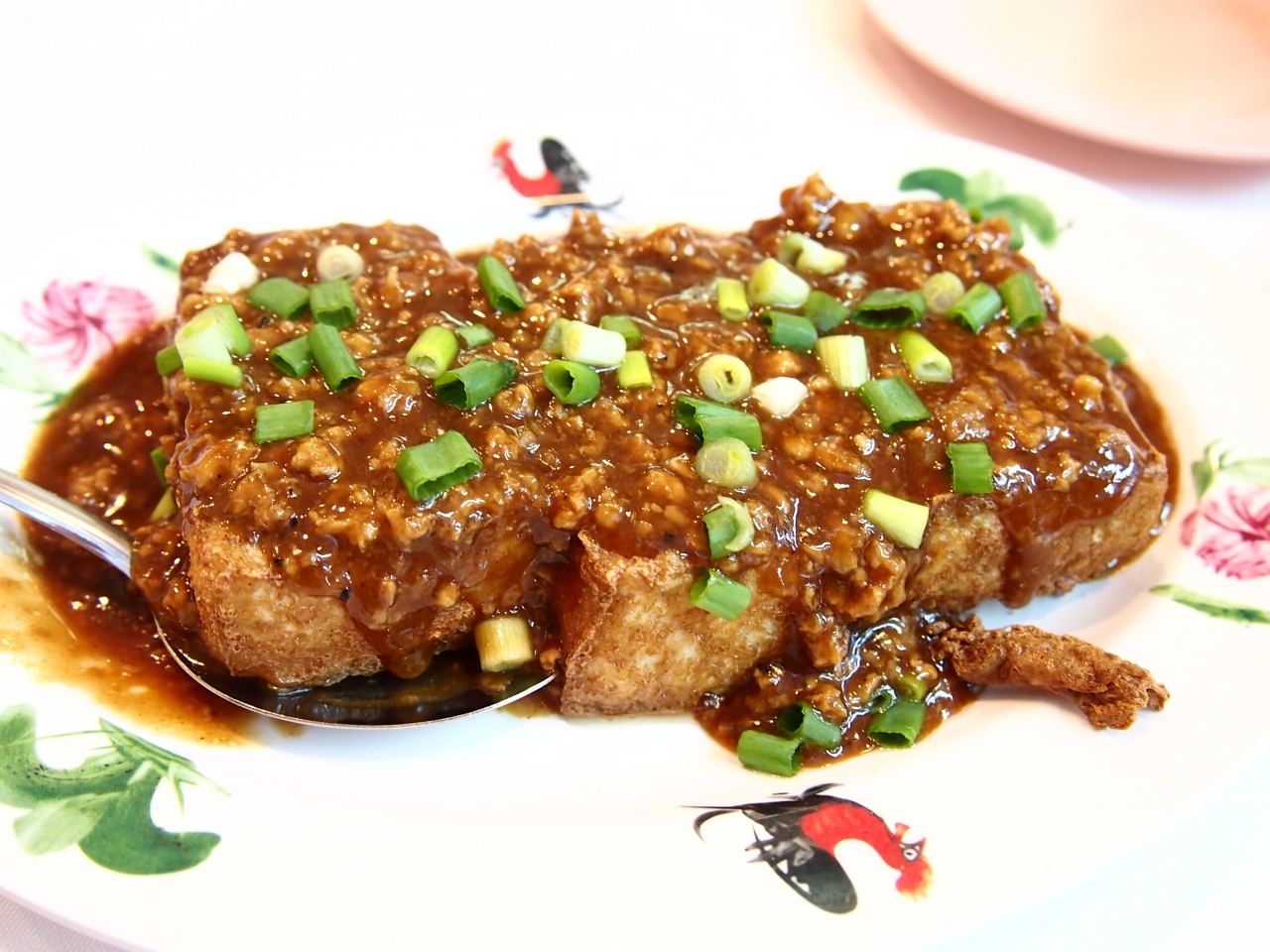 2人で、ハッピー豆腐、青菜のガーリック炒め、ペーパーチキン10個をオーダー