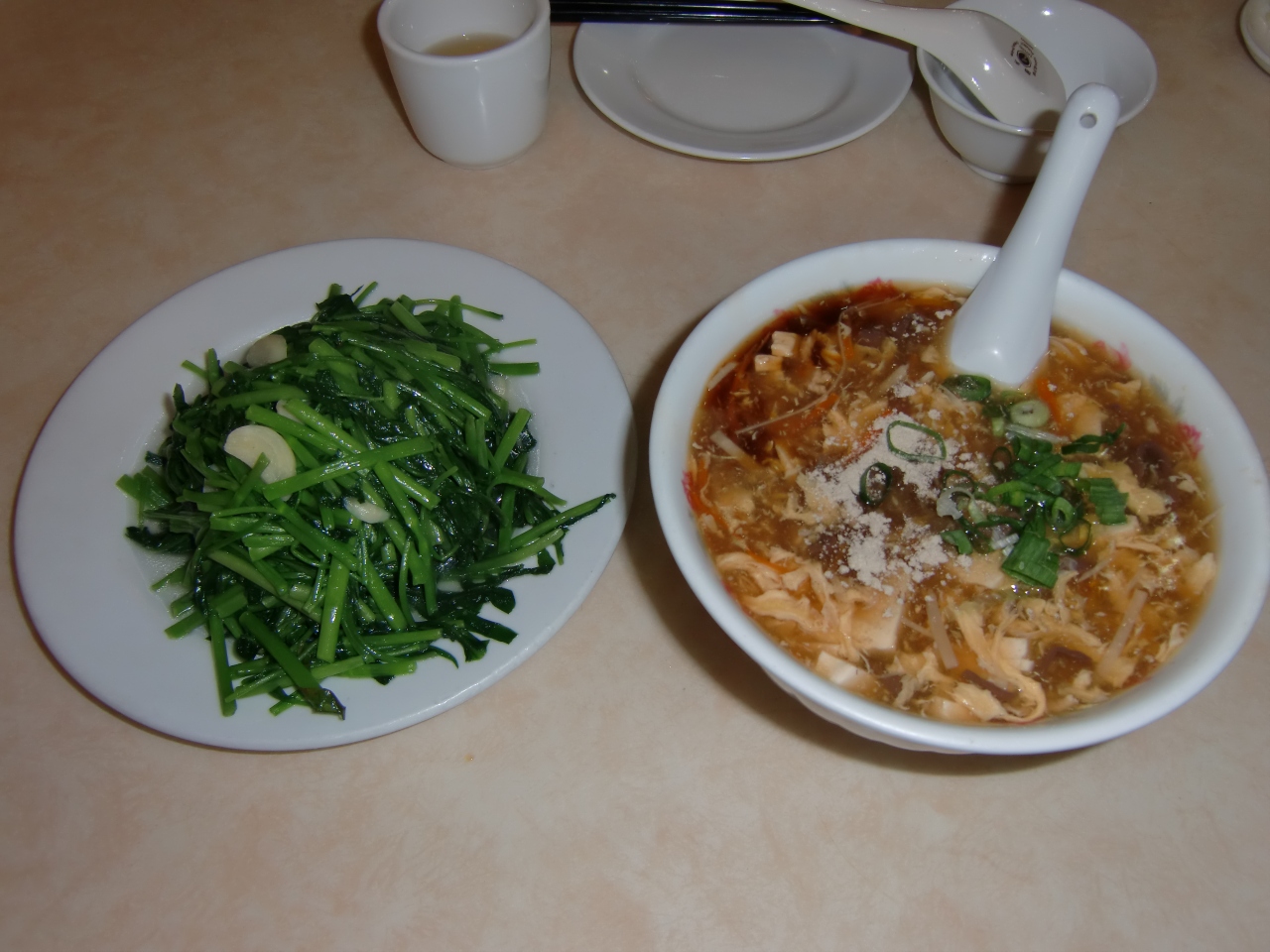炒空芯菜 140元、酸辣湯(サンラータン)小90元