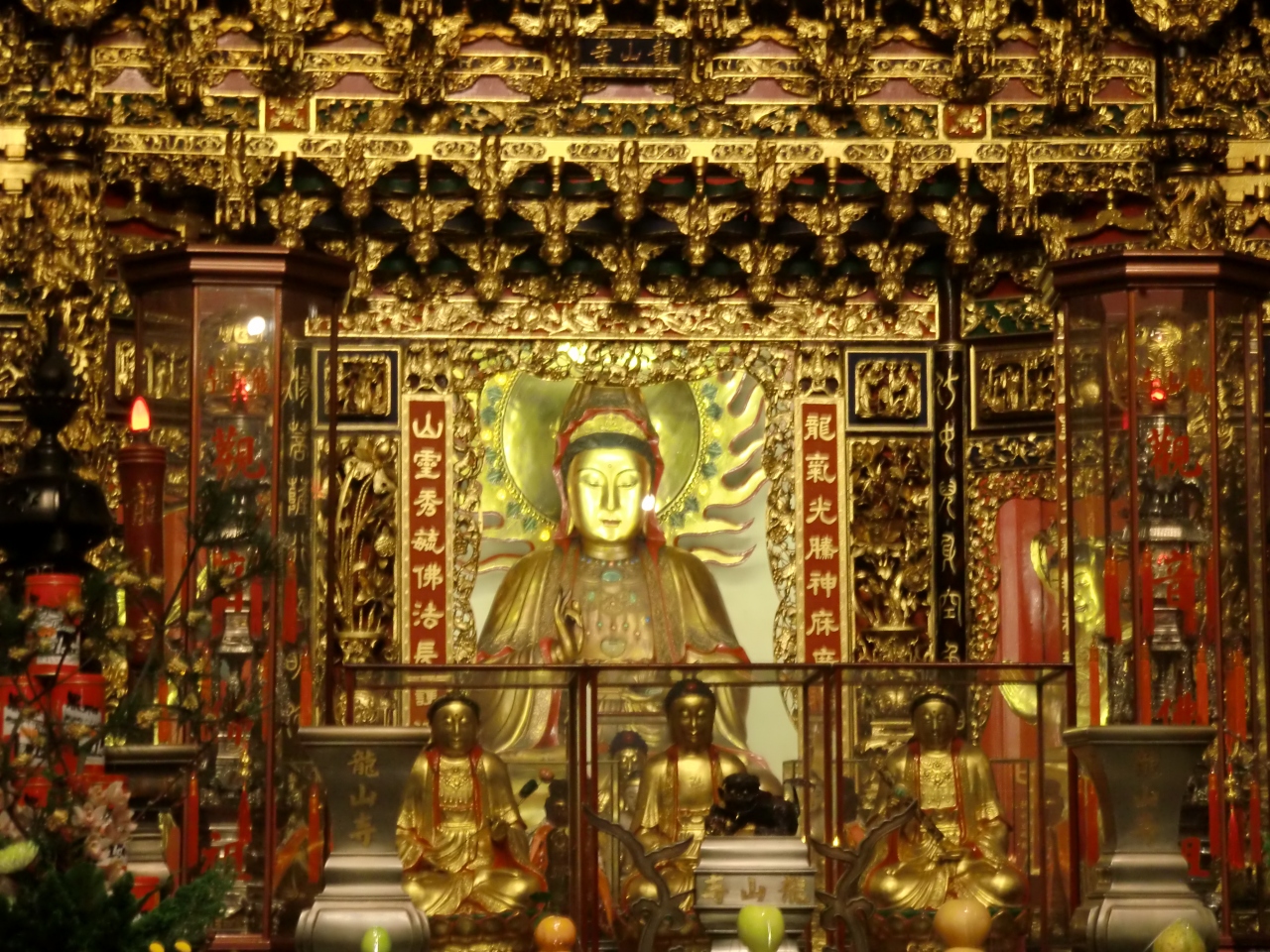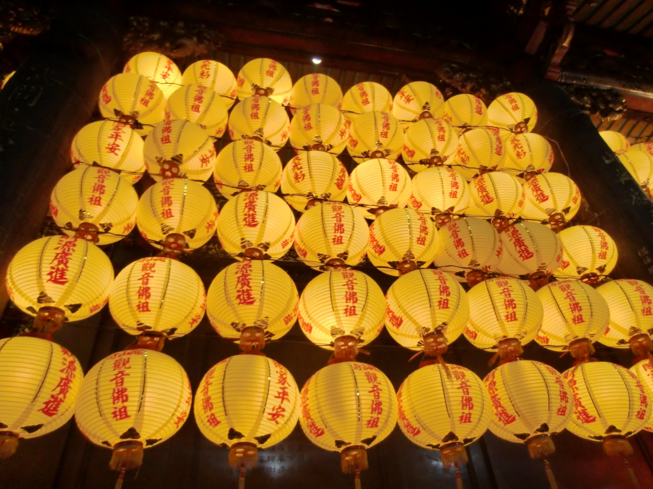神々しい、観世音菩薩様にお祈りし、きれいなランタンにも注目してみましょう!