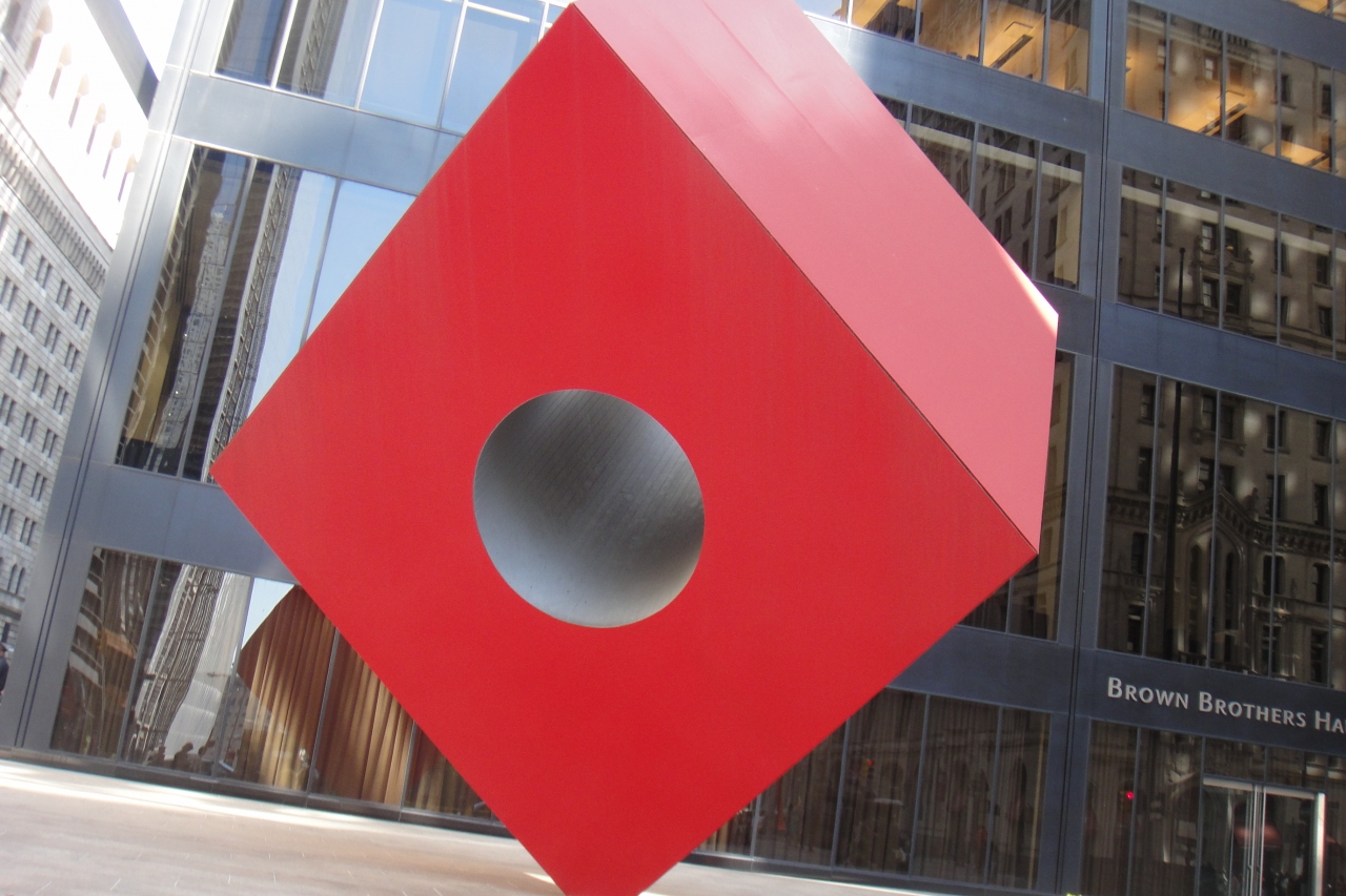 ウォール街のエリアにあるレッドキューブ。名前の通り赤い立方体のオブジェで丸い穴があいています。ビルの前の広場にあります。このレッドキューブの作成者はイサムノグチです。金融エリアで作品を見ることができるとは思っていなかったので少しびっくりでした。