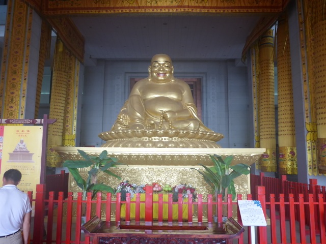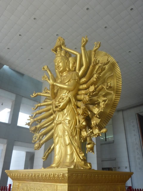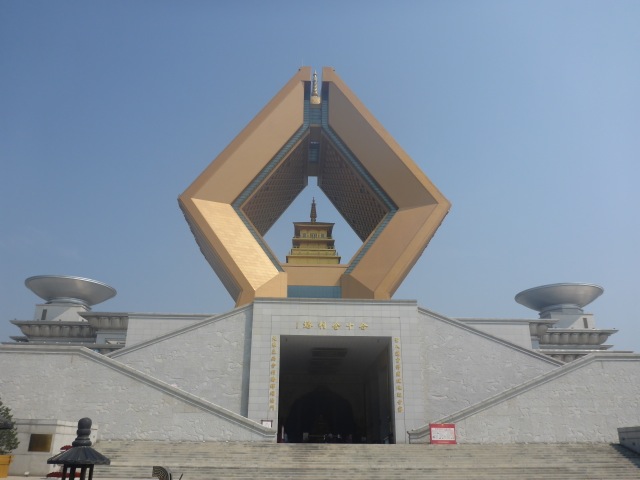 お寺は合十舎利塔と法門寺寺院、法門寺珍宝館に分かれますが、合十舎利塔までの参道が長くそれまでの間にある仏様の像もスケールがでかい。また、建物も近代建築的で、仏様は基本金色だ。合十舎利塔は仏教テーマパークのようだ。法門寺寺院は落ち着いた寺である(日本の寺よりは色彩豊かなのだが)。