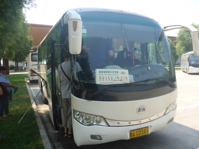 車をチャーターするか、ツアーで車を準備すれば別ですが、公共交通機関は西安駅からの遊2バスのみです。