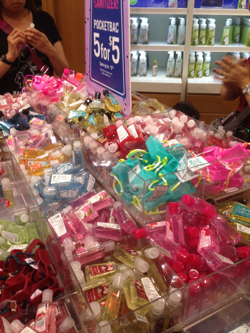 バス&ボディーは最近日本人観光客に大人気で、アラモアナ店はやや品切れ気味の印象でした。コンパクトなハンドジェルとホルダーがお土産に喜ばれるので、たくさん買い込みましたが、残念ながら数日後に行ったパールリッジ店の方が品揃えが充実していました。