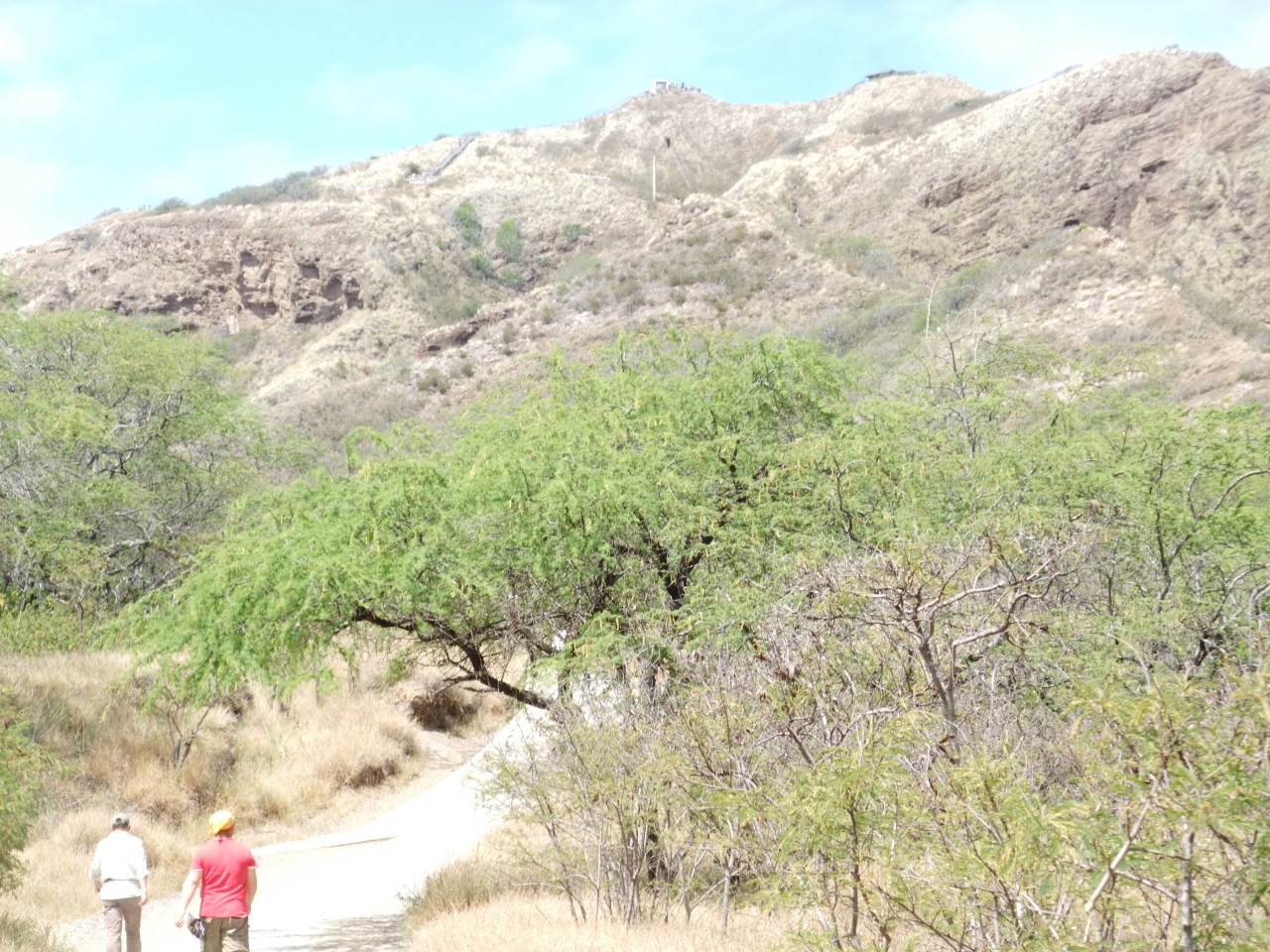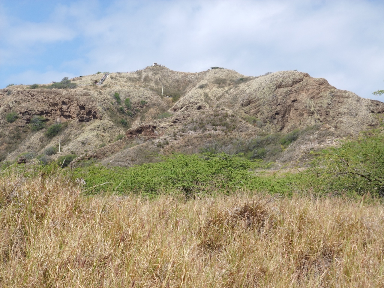 ダイヤモンドヘッドクレーターの中までバスで行き、ここから歩いた。料金所で一ドル払って、登山口へと急ぎ、山頂までの片道一・三キロを登った。
