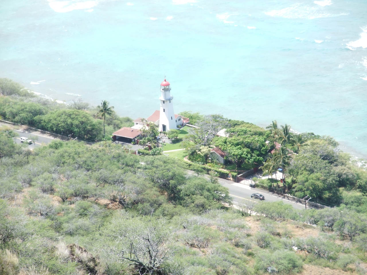 私はダイヤモンドヘッド ライトハウスへは行ってなく、ダイヤモンドヘッドに登りに行く途中のバスの中からと、ダイヤモンドヘッドの頂上近くの展望台から見ただけですが、白い建物が、青い海に映え、とてもきれいで素敵に見えました。